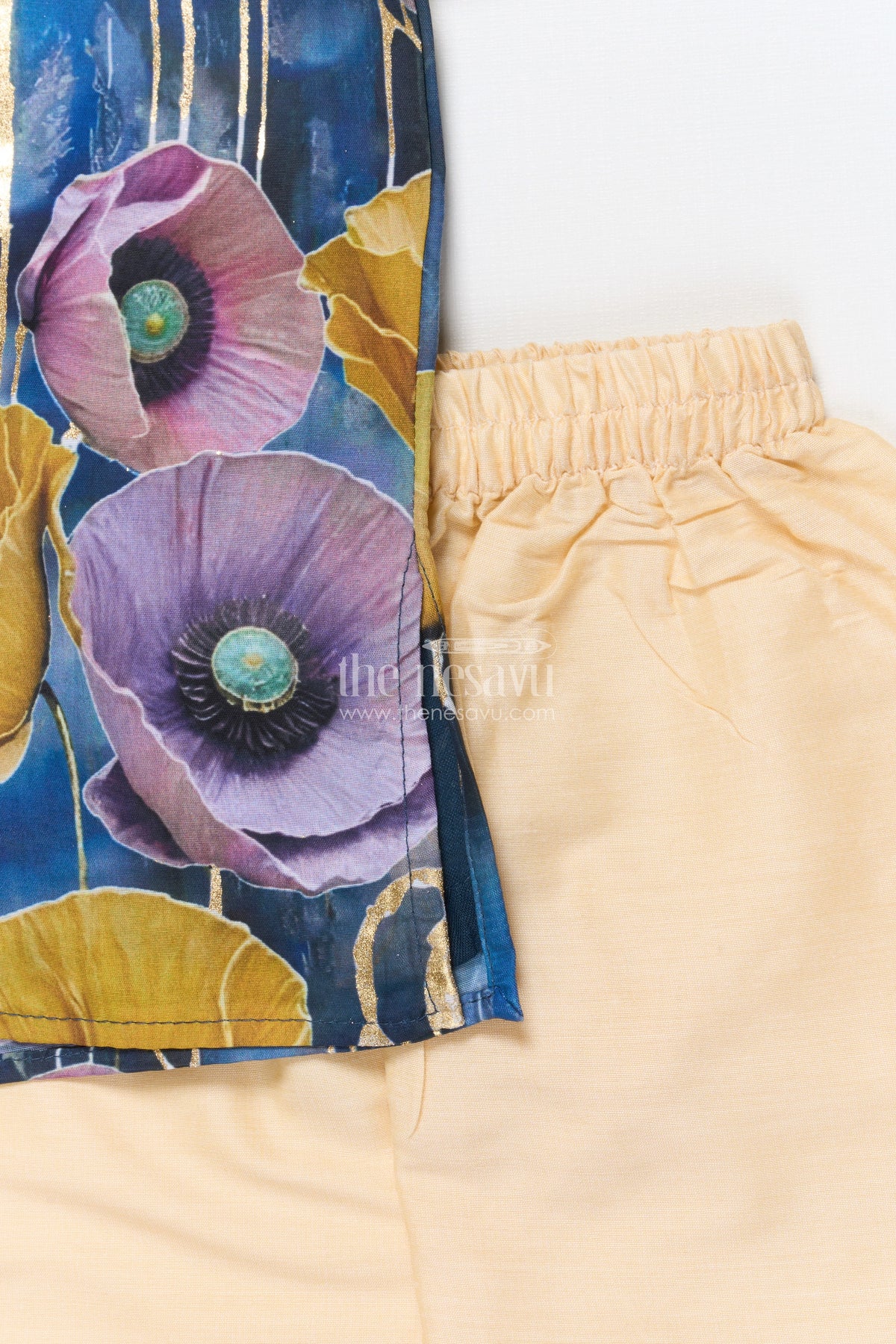 - Design: Floral foil print, Traditional kurta set