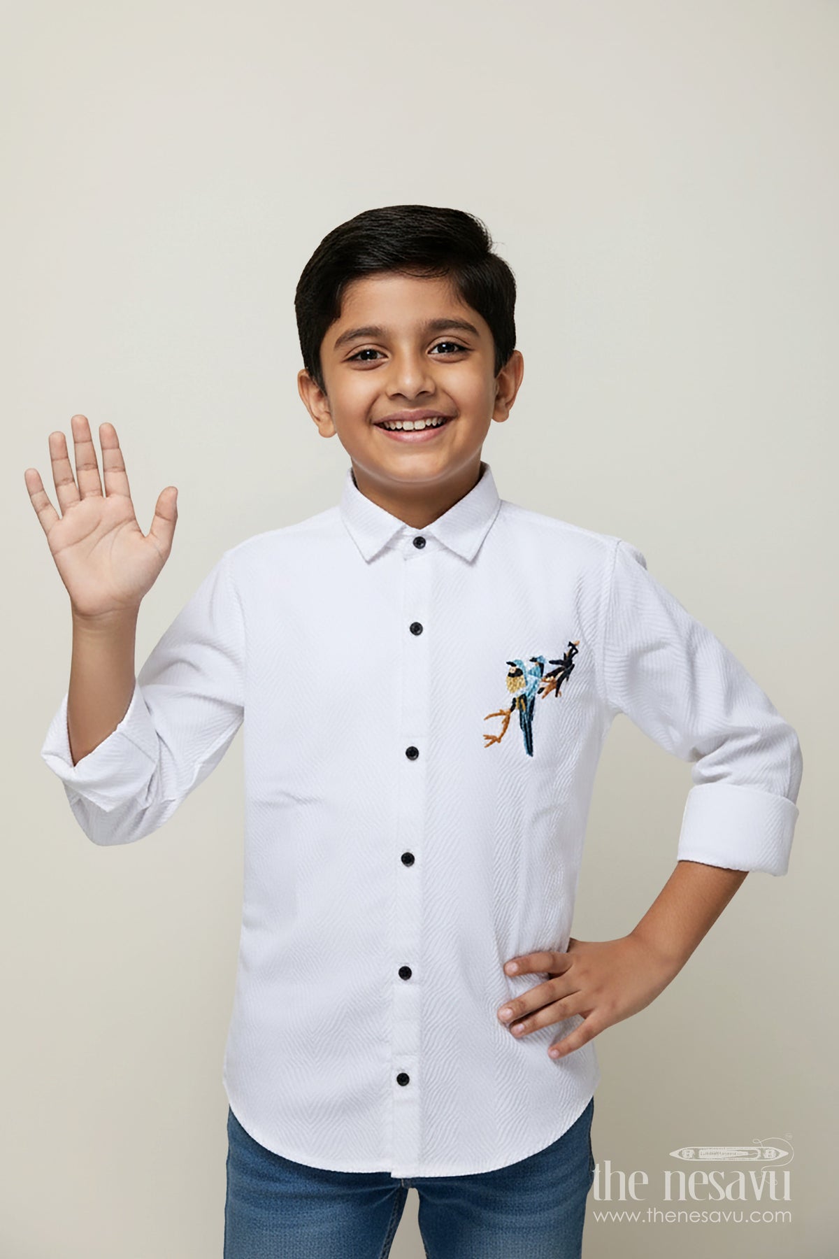 The Nesavu Boys Cotton Shirt Boys Full Sleeve Shirt for Festive Events and Family Outings Nesavu 30 (8Y) / Half white BS348B-30 Nesavu boys full sleeve shirt designer embroidery festive occasions family events