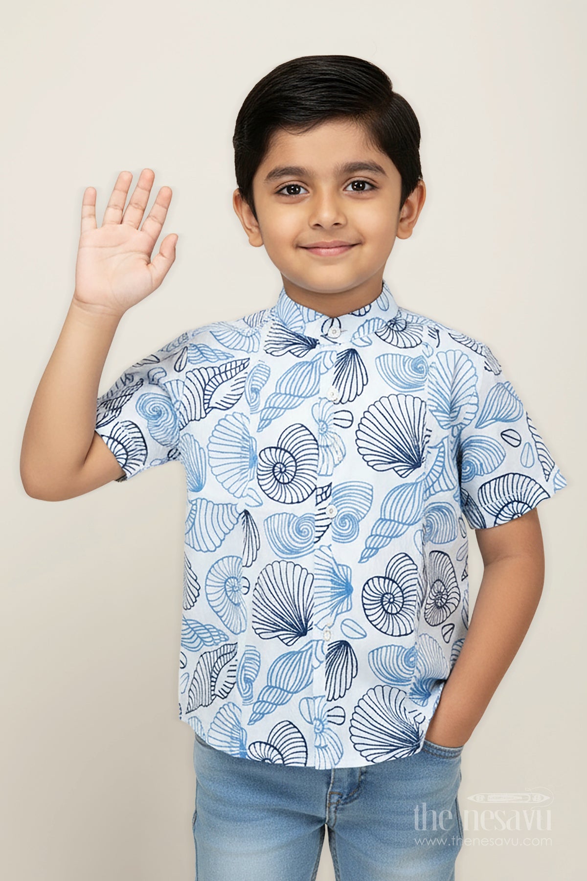 Toddler Boys Casual Shirt for Day Events with Blue Nautical Shell Print On Soft Cotton