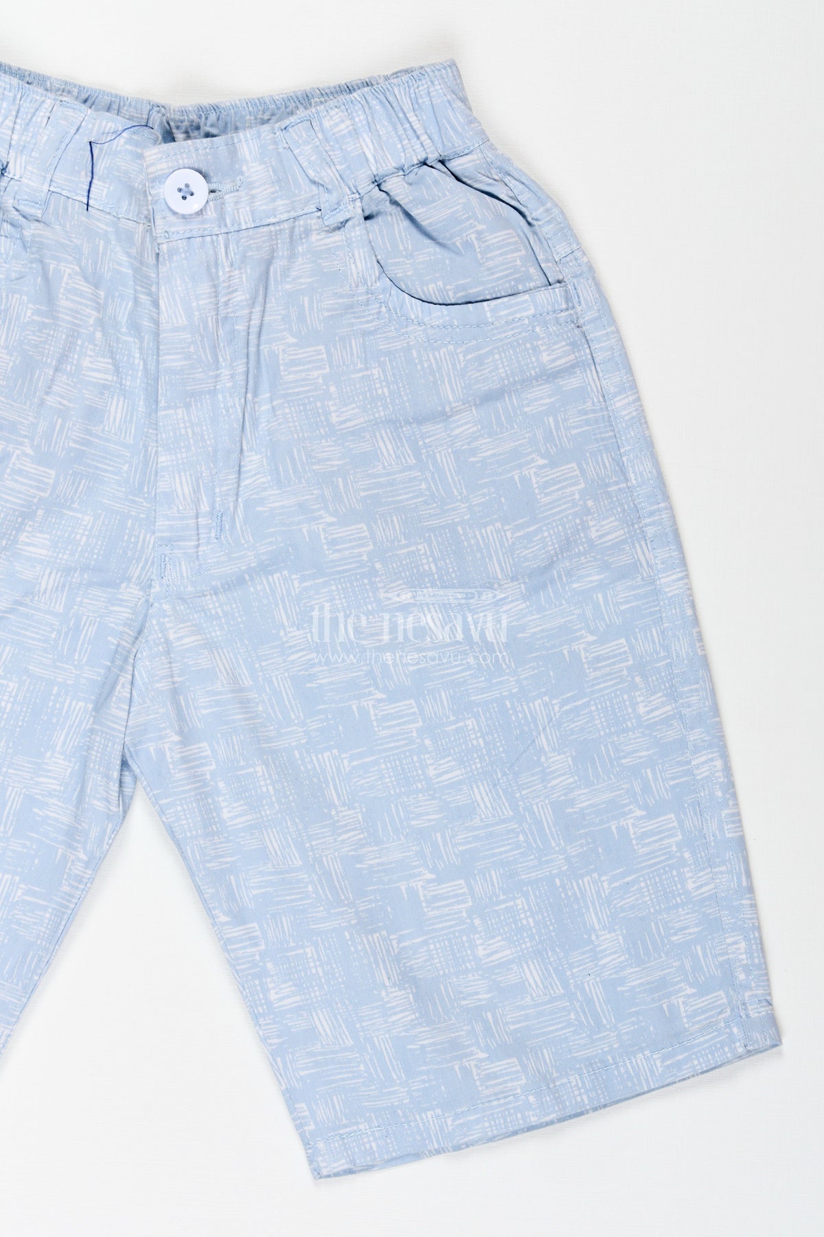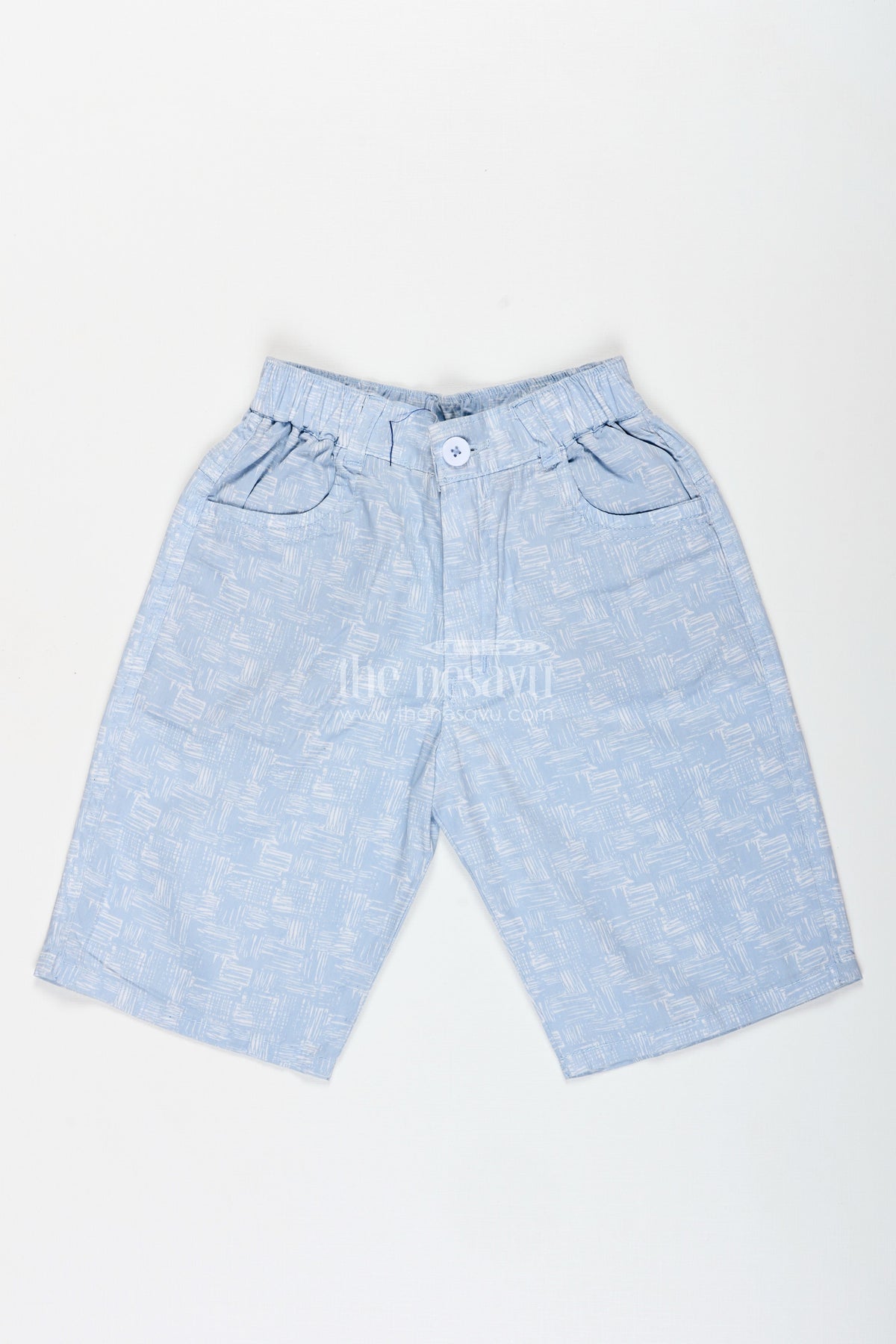 Boys digital printed shorts are a warm-weather staple, and this blue pair blends functionality and flair with ease. Made from a soft cotton blend, these shorts offer a breathable and lightweight feel ideal for active days. The digital print adds a modern twist to the classic silhouette, giving boys a stylish yet understated option for daily wear. Featuring an elastic waistband for easy dressing and a relaxed fit, these shorts are perfect for playtime, outings, or lounging. The neutral blue tone makes them highly versatile, pairing effortlessly with a range of tops. Whether it's a casual day or an adventure-filled afternoon, these shorts keep boys moving in comfort and style.