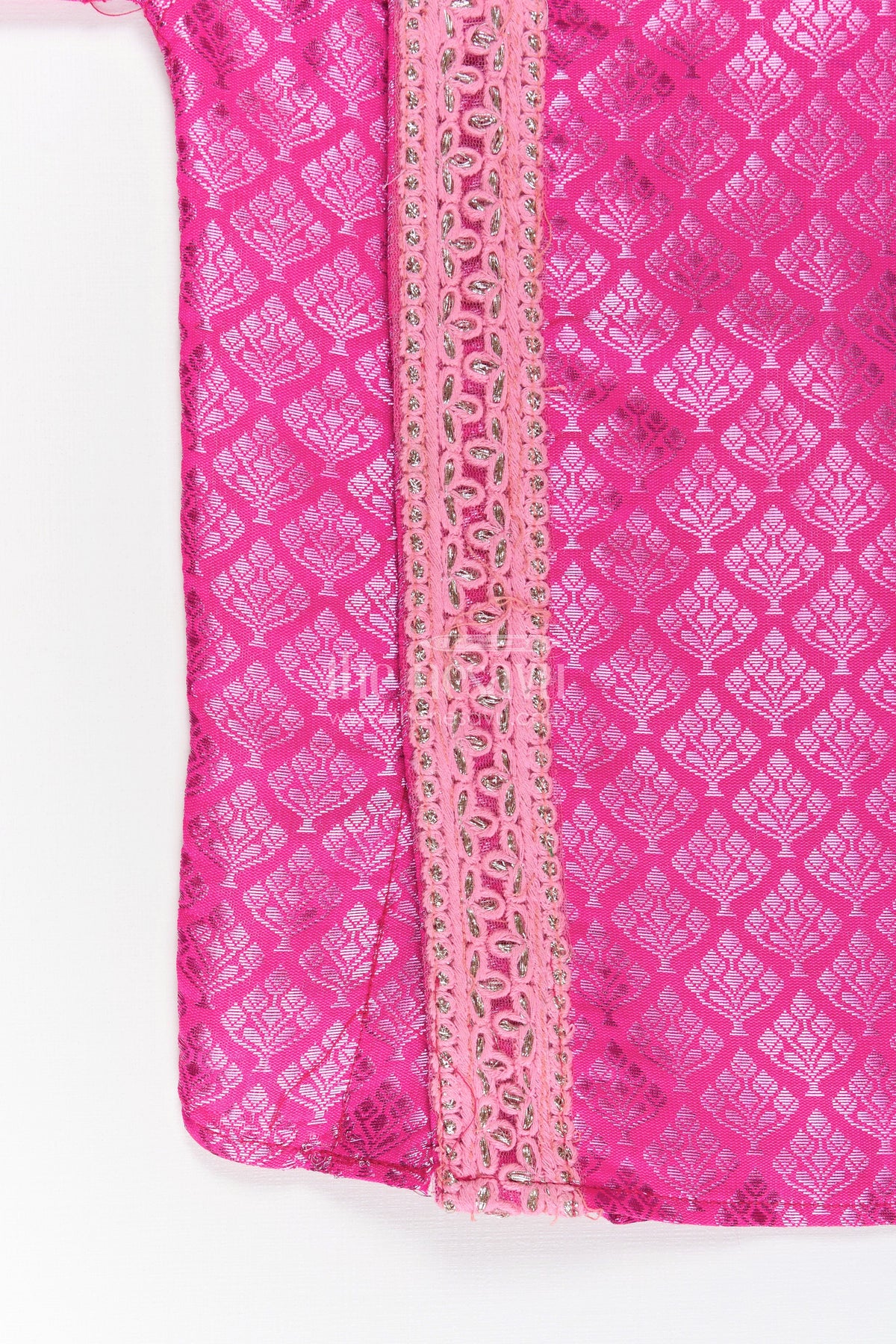 Boys Semi Banaras Pink Silk Shirt with Woven Motifs and Delicate Front Embroidered Trim