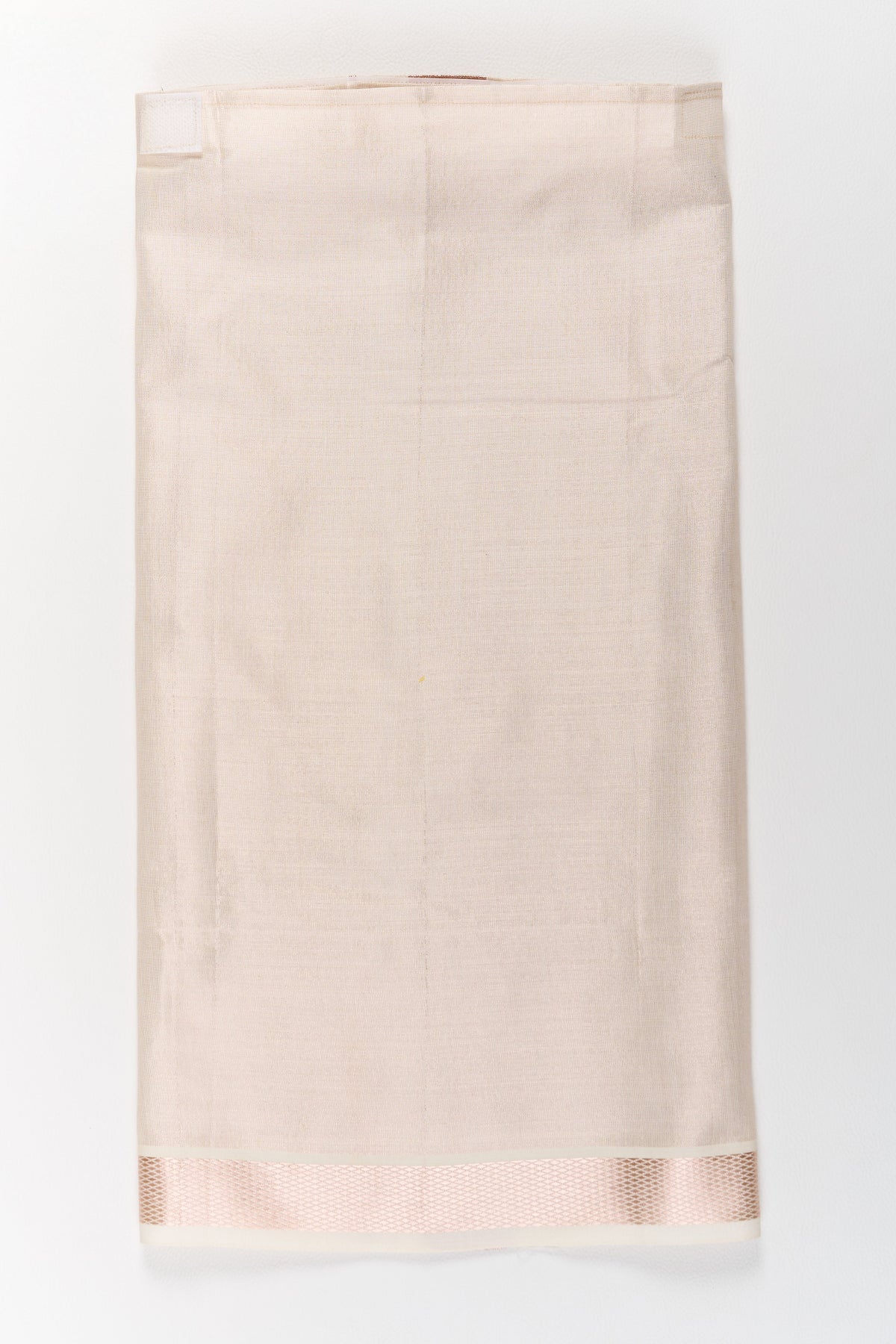 This elegant hindu traditional dress for boys features a premium blend silk fabric with a rich copper zari border, creating a sophisticated and classic look. Lightweight and breathable, this vesti ensures maximum comfort, making it ideal for temple visits, weddings, or festivals like Pongal and Navratri. The soft texture of the blend silk fabric makes it suitable for all-day wear, while its intricate zari detailing adds a regal touch to your child's traditional attire. Pair it with a matching shirt or kurta for a complete ethnic ensemble.