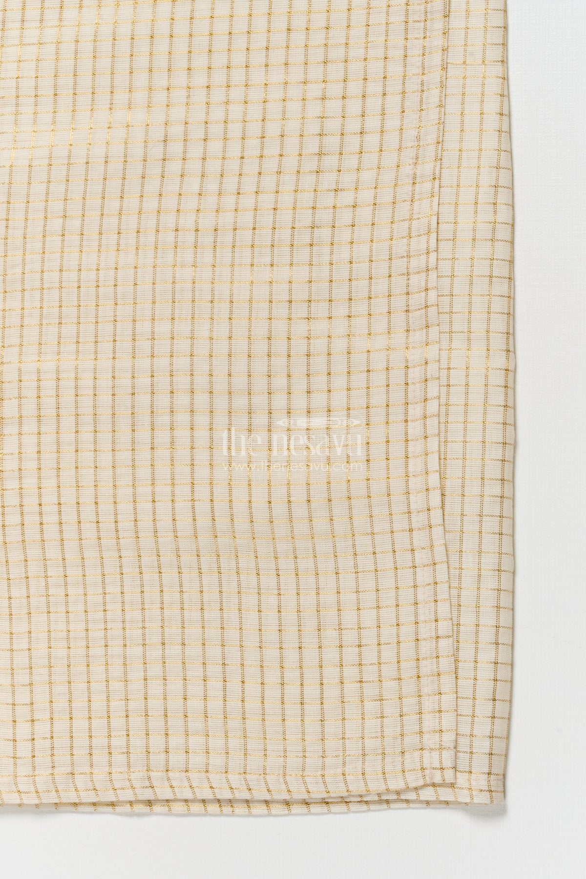- Crafted in a soft tissue fabric with delicate golden check lines throughout