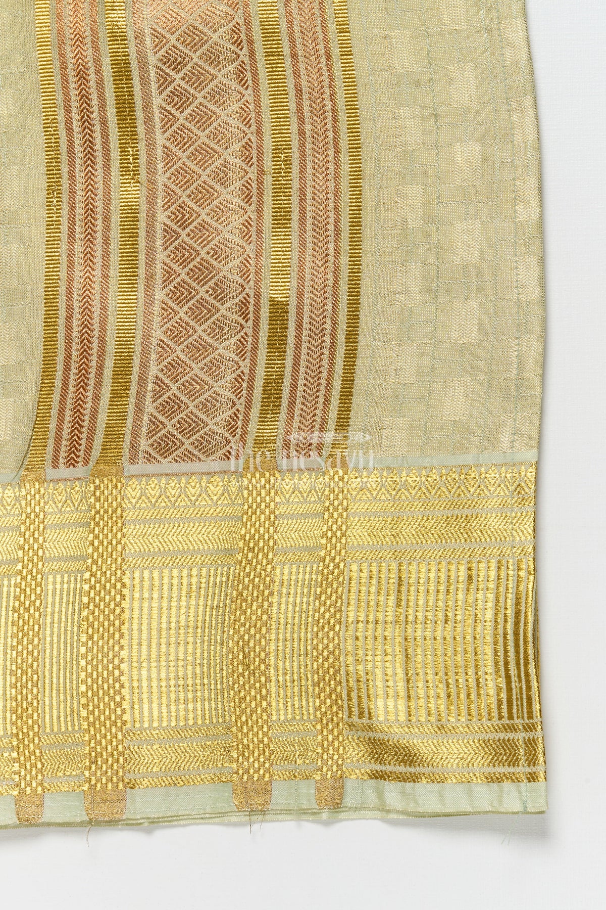 Boys Traditional Gold Vesti with Broad Zari Pallu for Festive Wear