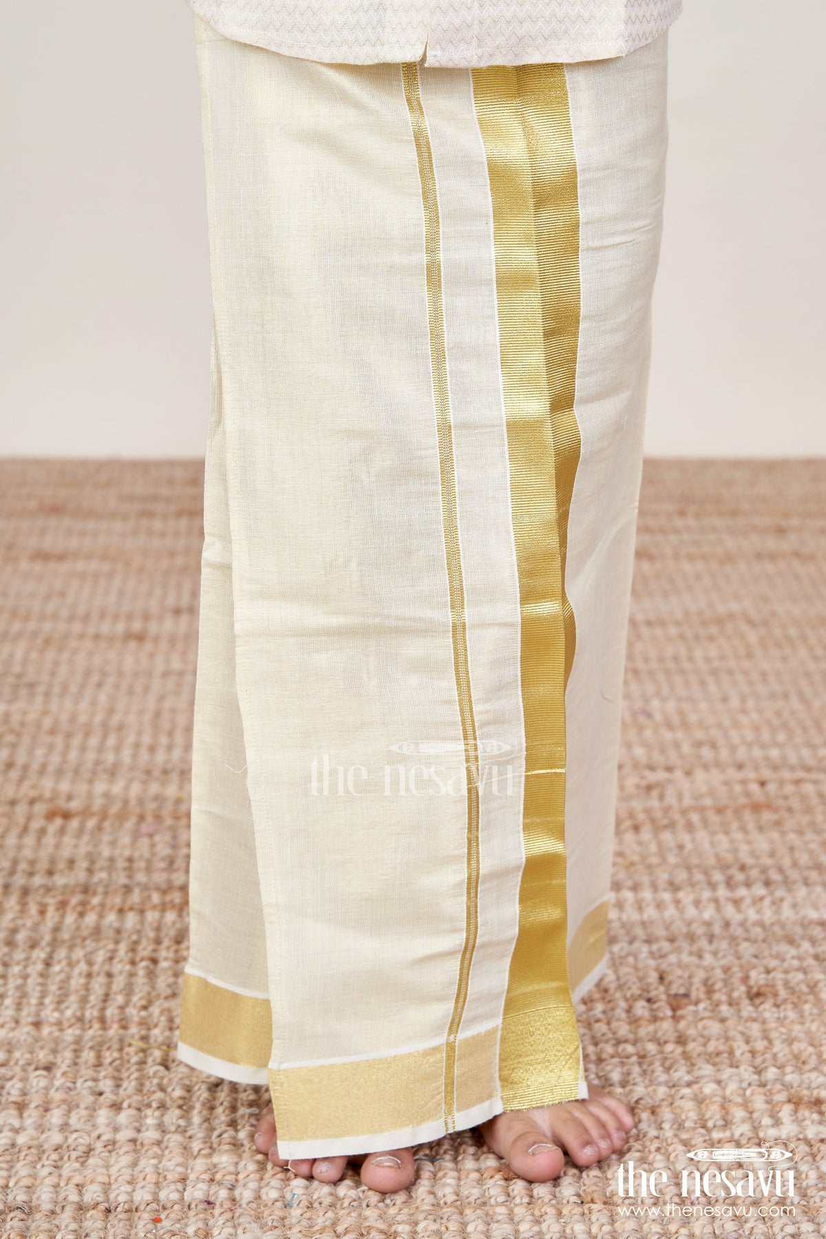 The Nesavu Boys Vesti Boys Traditional Vesti for Family Rituals and Festive Wear Nesavu 22 (4Y) / Cream D032A-22 Nesavu boys traditional tissue vesti zari border rituals functions ethnic celebrations