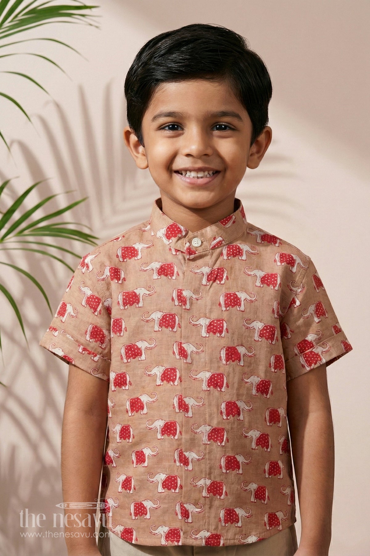 Boys Cotton Shirt with Red Elephant Print Festive Clothing
