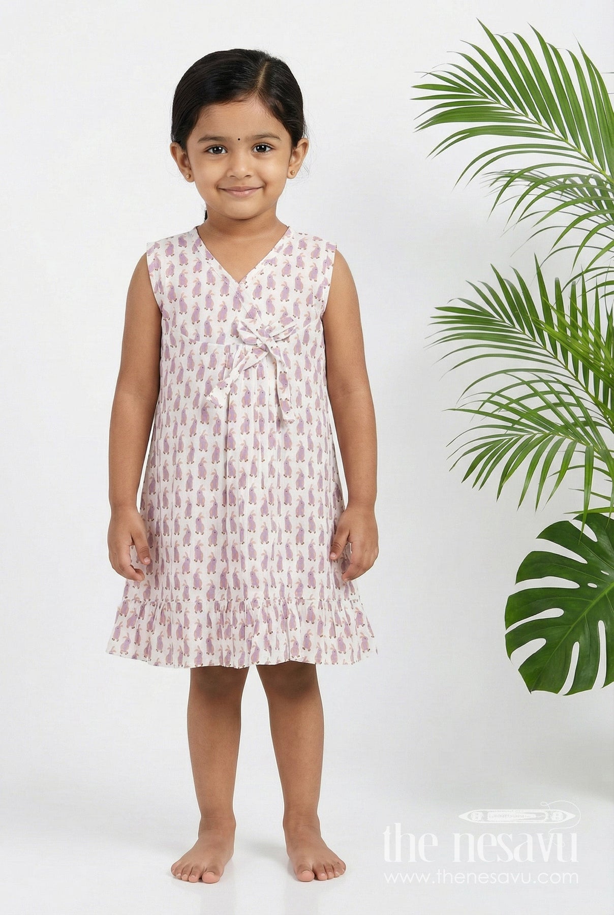 Soft Cotton Frock for Girls captures innocence and comfort with its soothing tones and delightful design. Crafted from premium hand block printed cotton, this frock features an all-over bunny motif that adds a gentle touch of charm and storybook elegance. The off-white backdrop gives it a light, airy feel, perfect for warm days and indoor play. A delicately tied bow at the waist adds visual interest and a flattering shape, while the frilled hem provides a graceful finish. Its sleeveless construction ensures ease of movement, making it a practical yet stylish choice for active kids. Whether worn casually or layered with accessories for a slightly dressed-up look, this frock offers versatility, softness, and a timeless appeal. Built for comfort and made to last, it’s a perfect everyday piece.