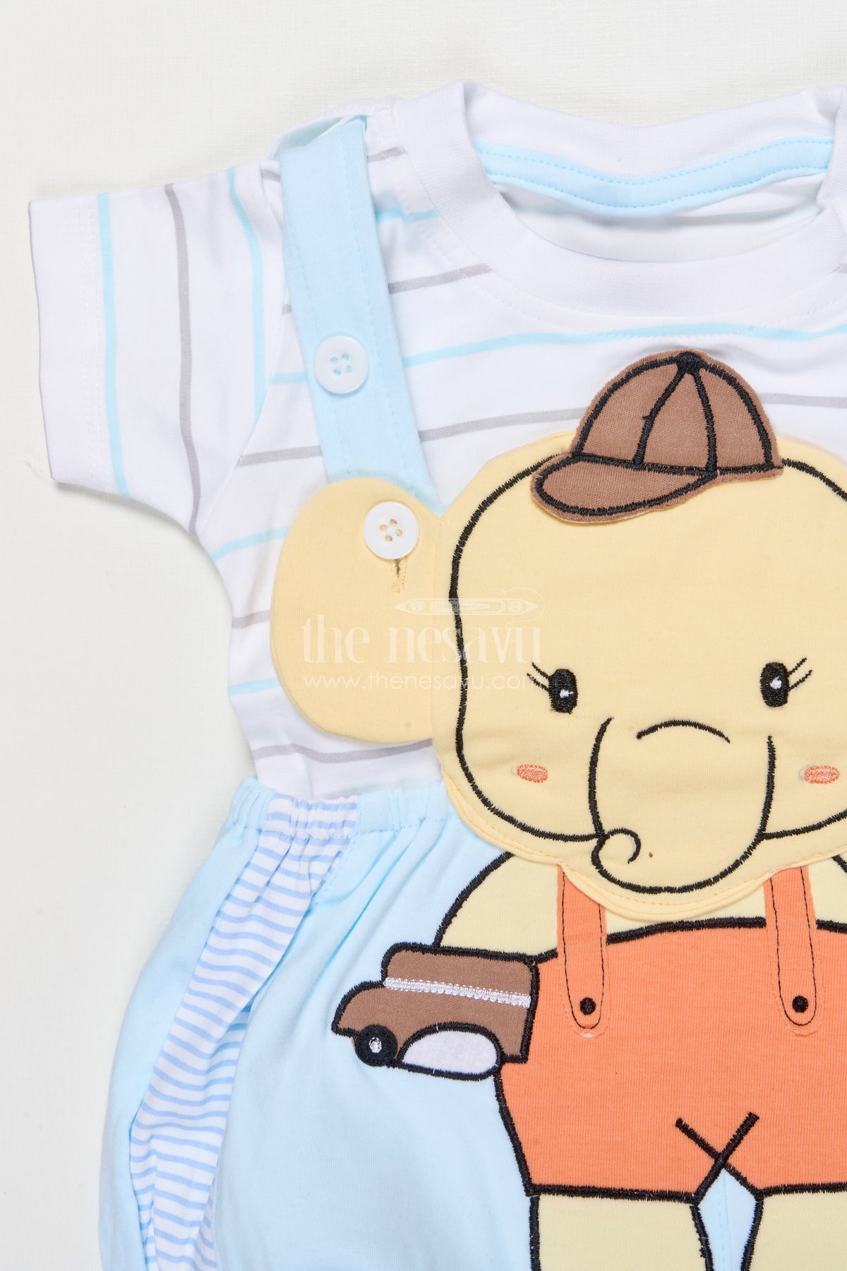 The Nesavu Baby Dungarees Embroidered Baby Dungaree Set for Casual Wear and Playtime Fun Nesavu 14 (6M) / Blue BCS516A-14 Nesavu embroidered baby dungaree cotton set boys  perfect playtime everyday comfort