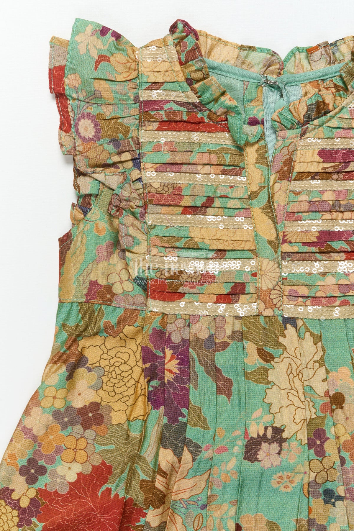 - Design: Digital floral print, gathered waist