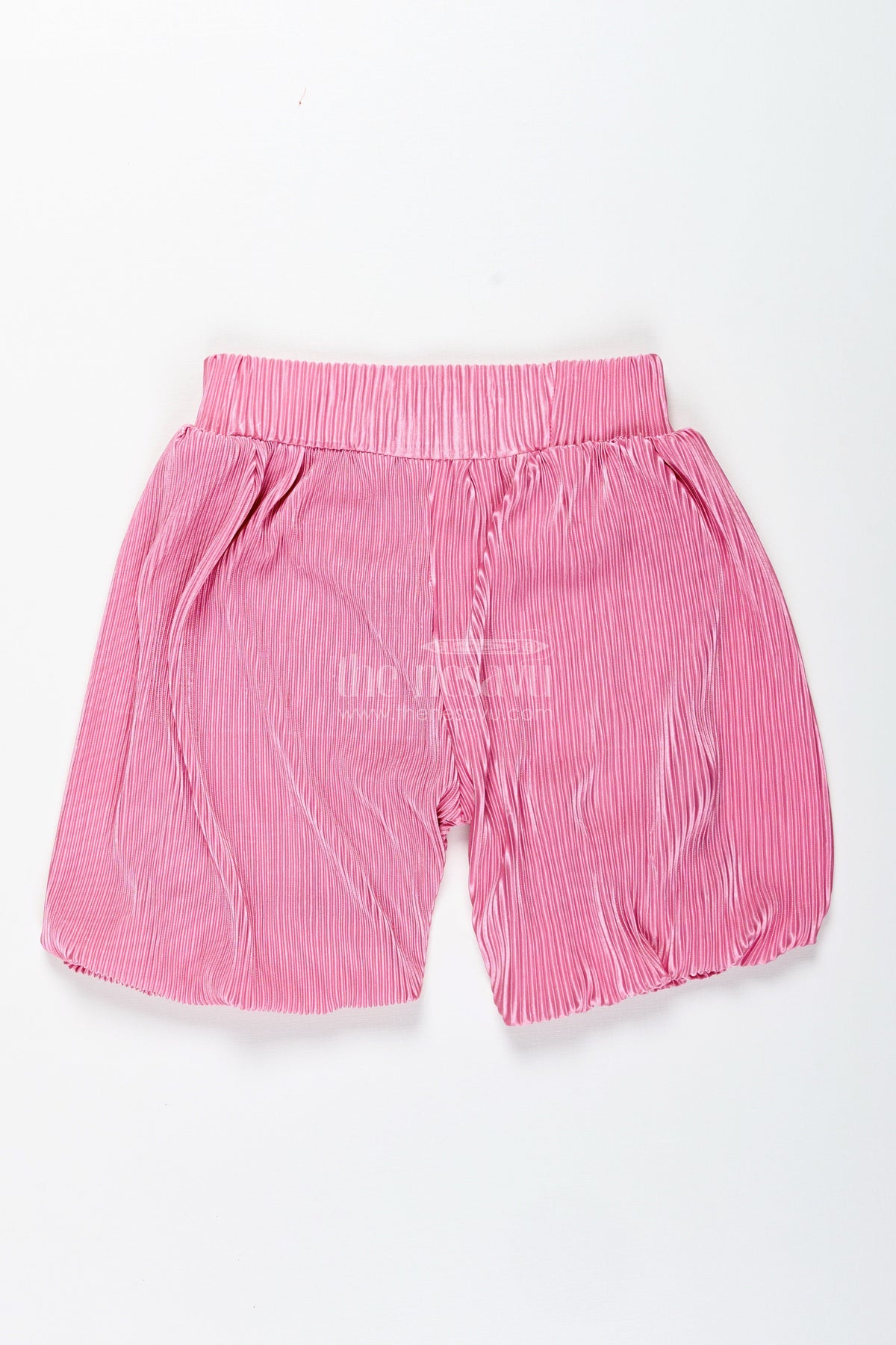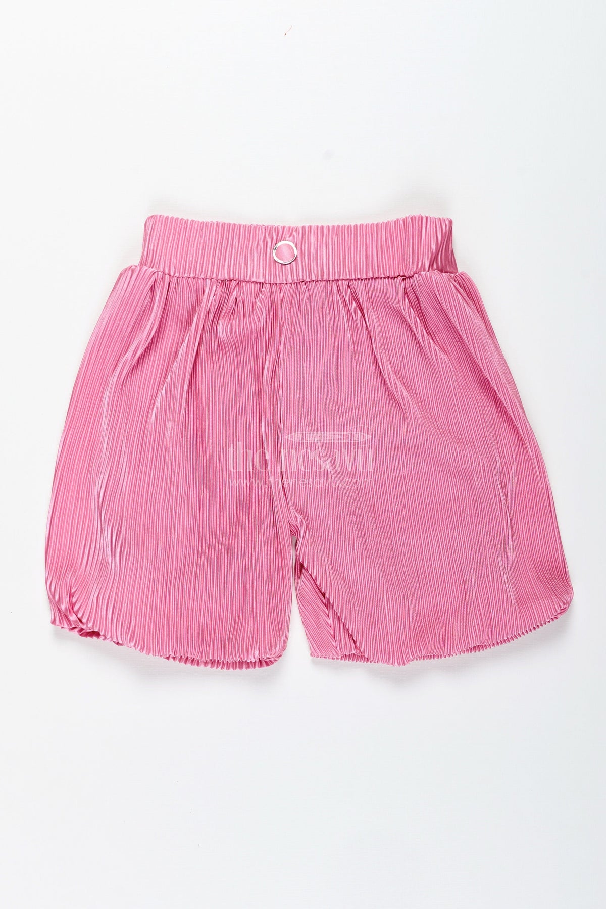 Pink Velvet Pleated Shorts for Girls Festive and Winter Styling