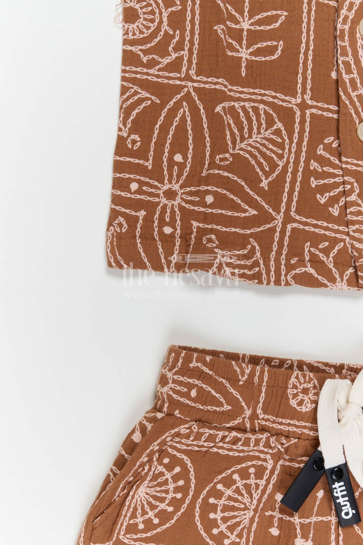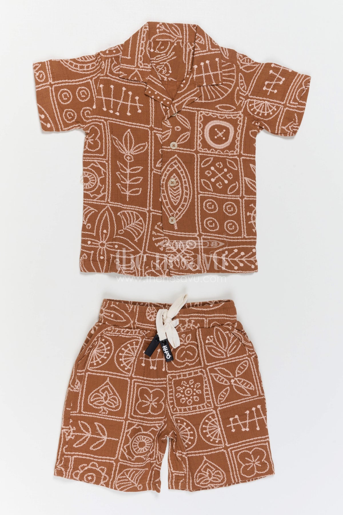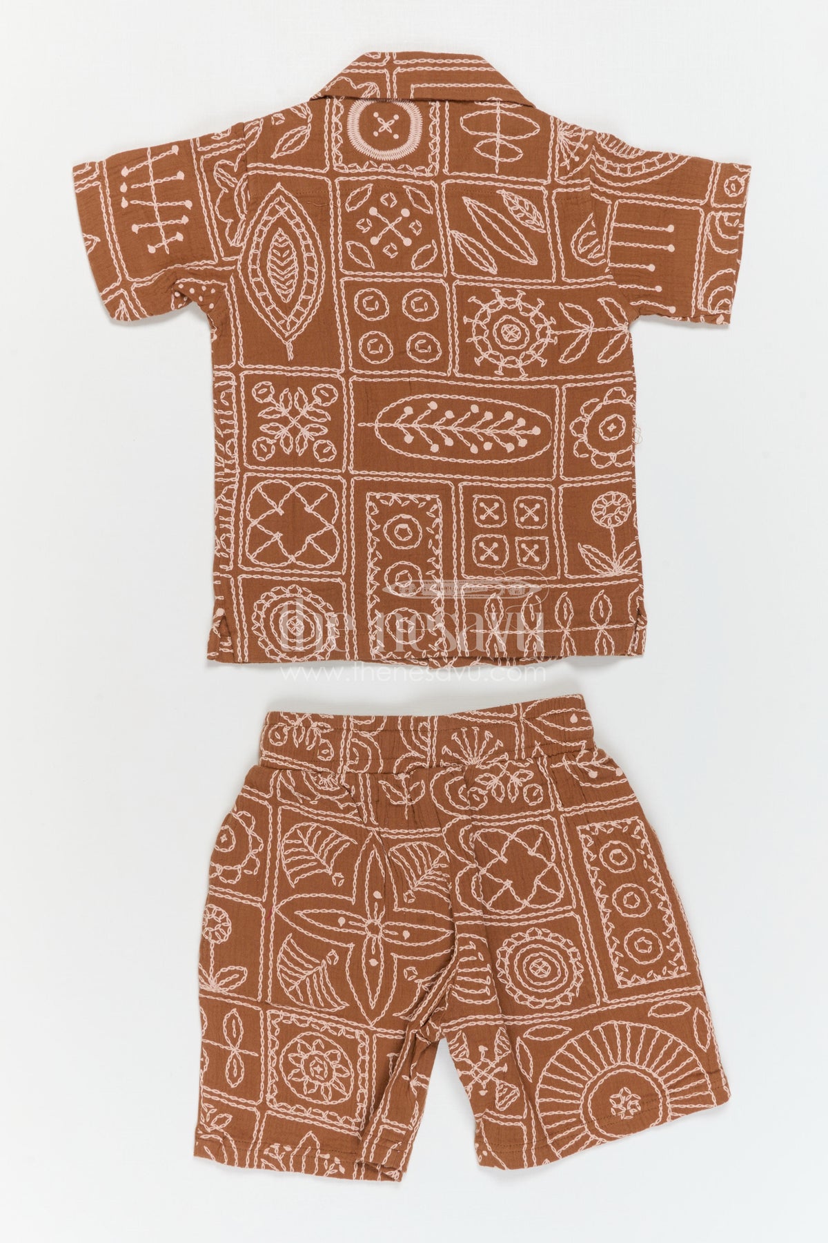 • Design: Embroidered shirt with matching shorts