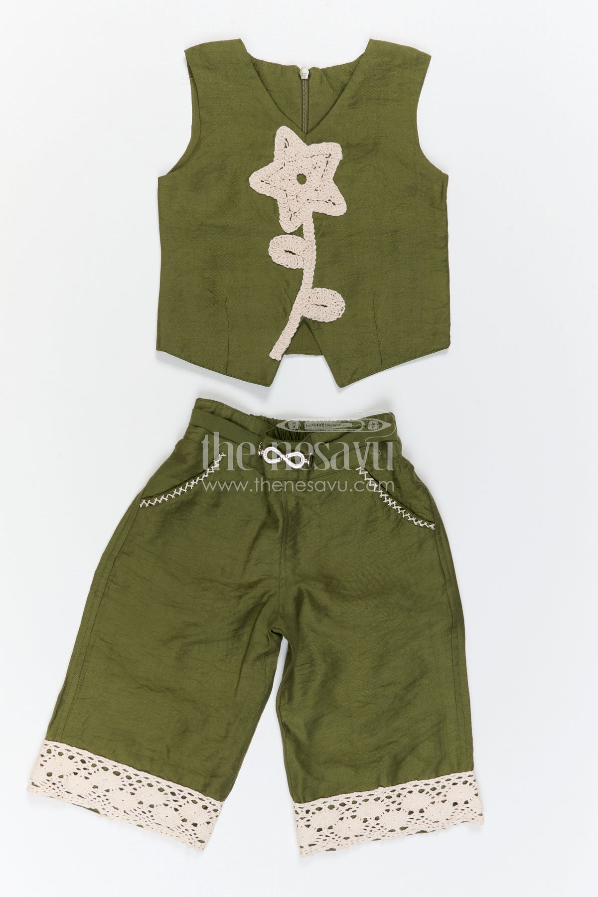 • Lace embellished embroidery adds a delicate festive touch to the outfit