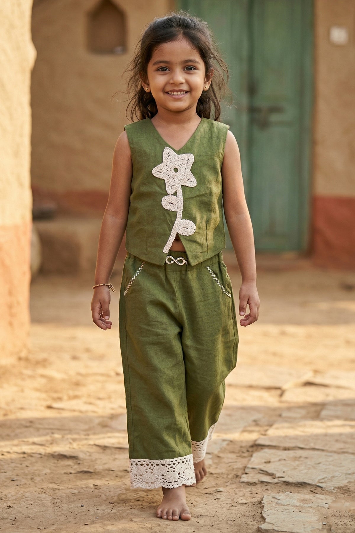 • This girls sharara co ord set for festive functions is made from soft rayon cotton with embroidery lace details