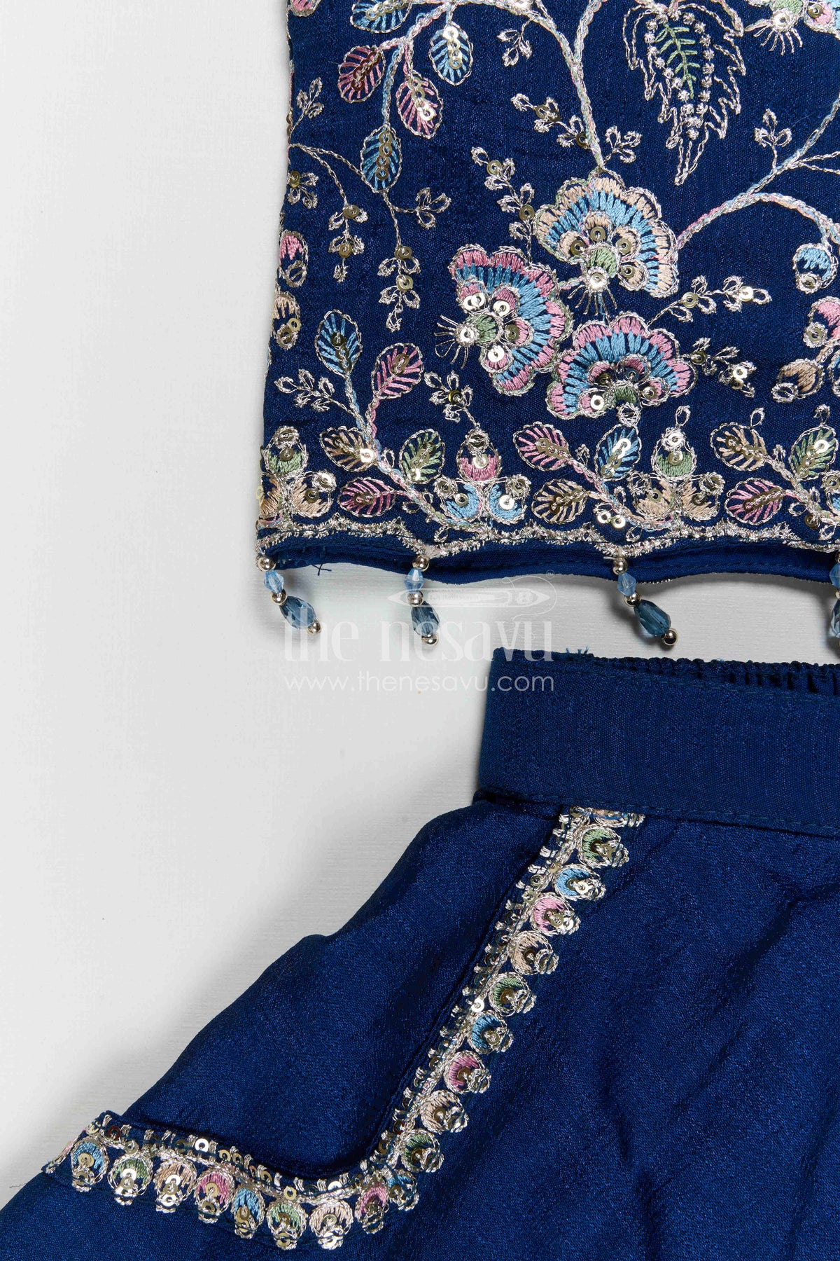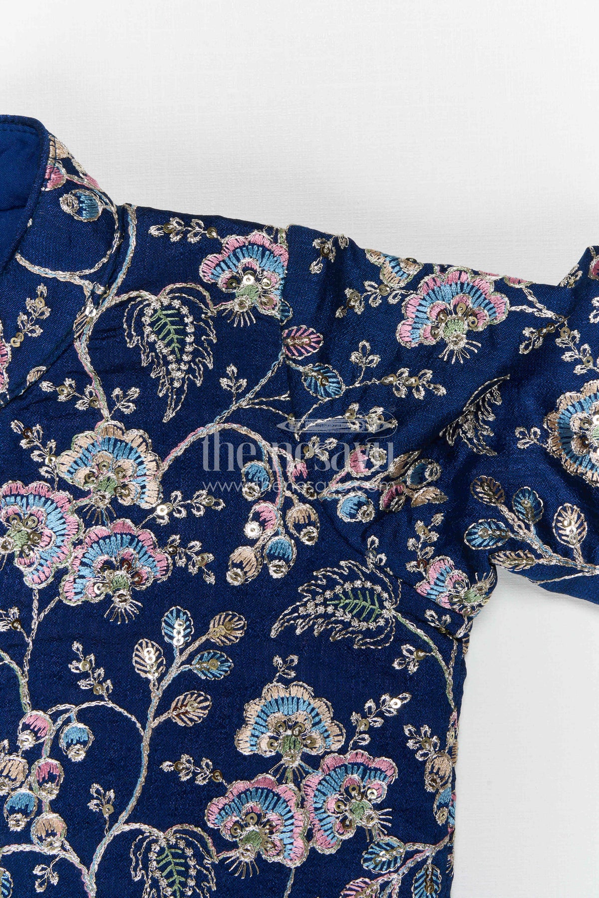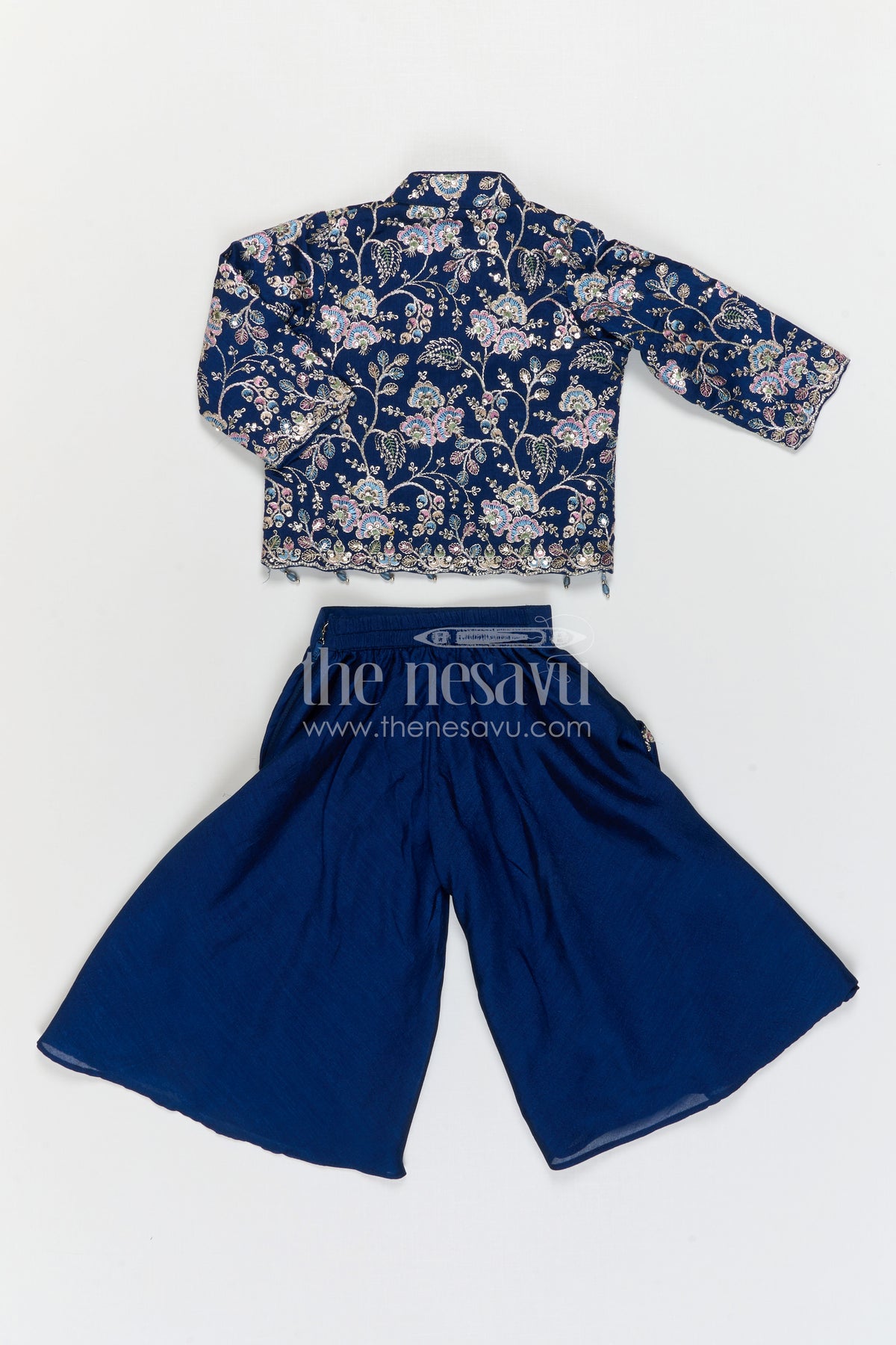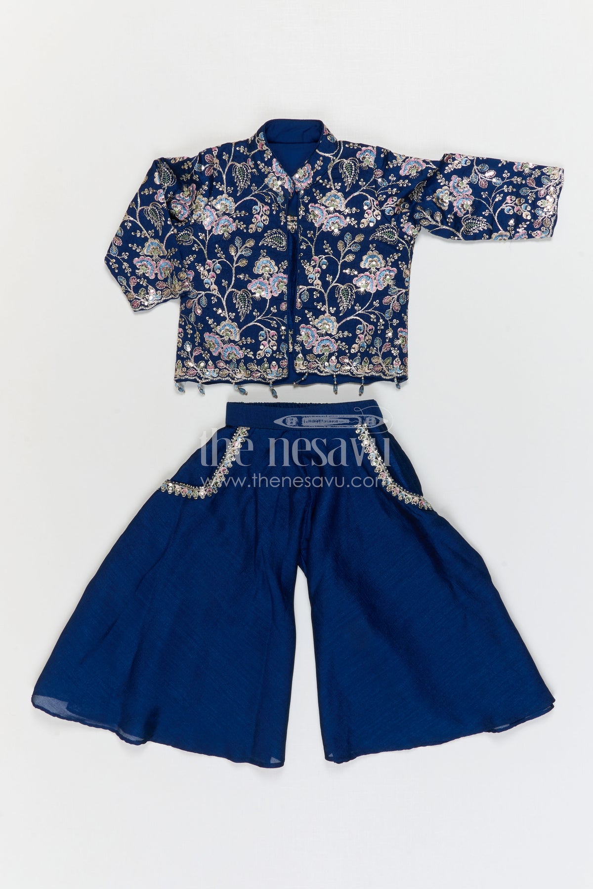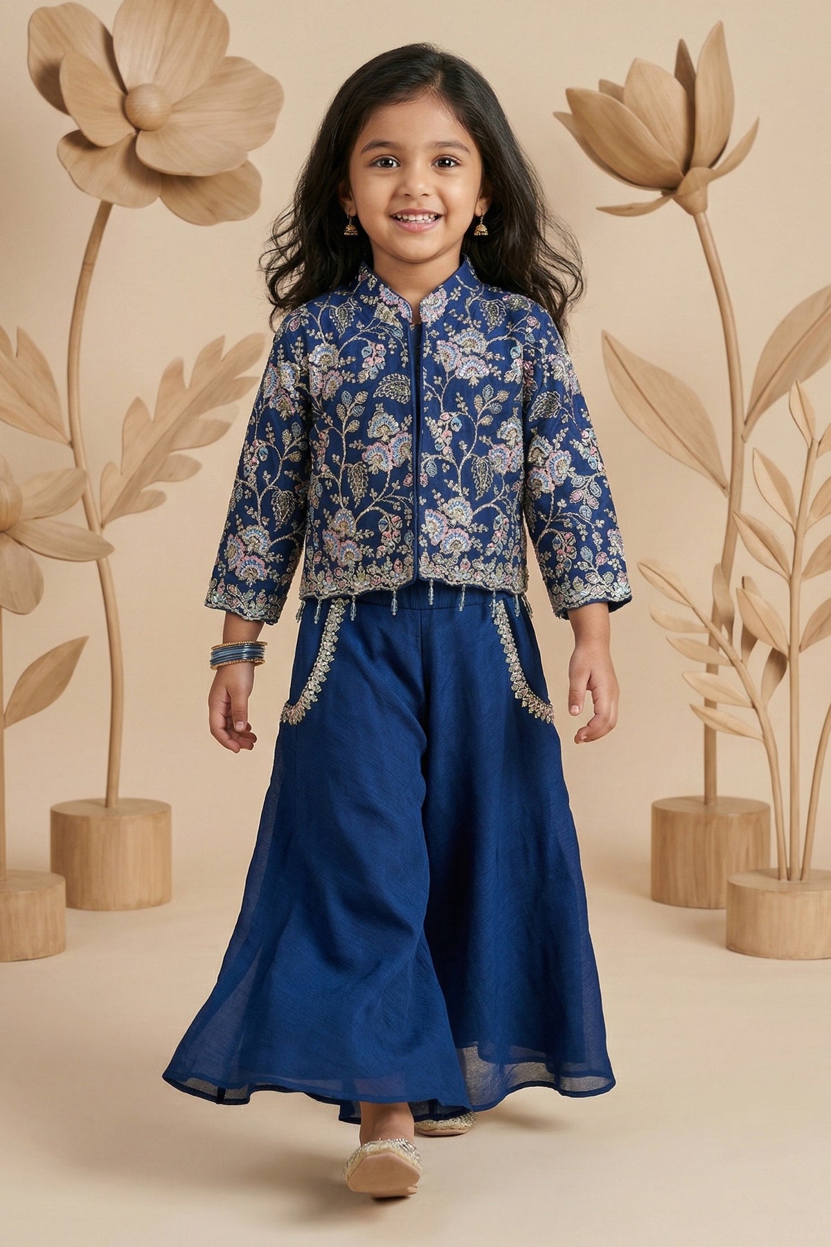 • This girls sharara set for festive occasions is crafted from viscose blend silk with an intricately embroidered jacket