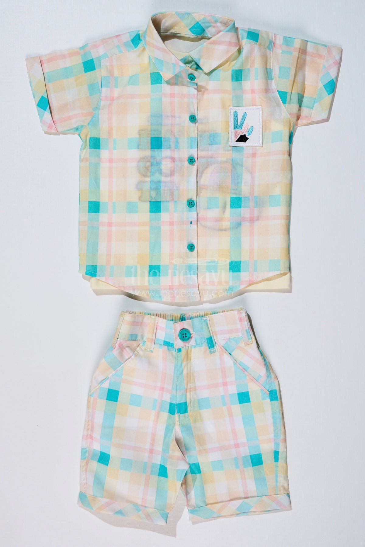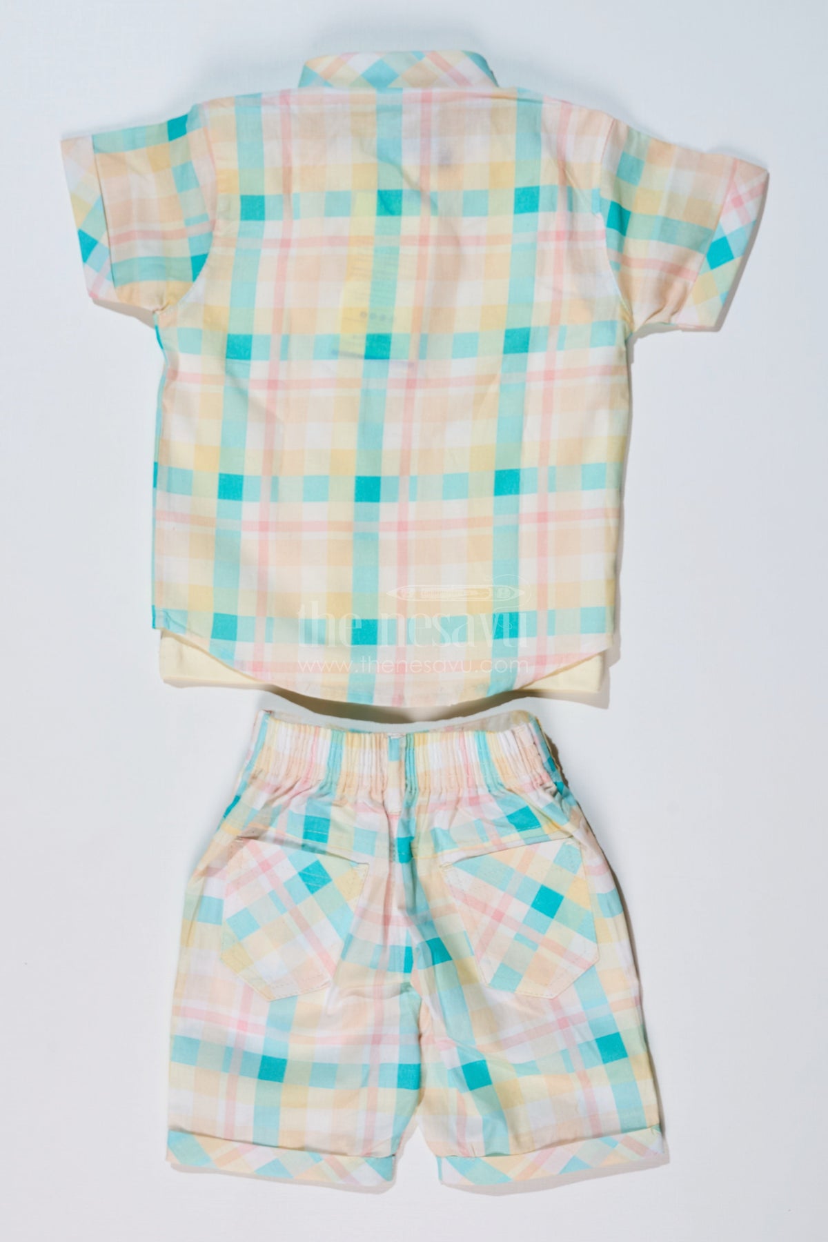This boys best smart casual shirts set is a stylish yet comfortable option for everyday wear. Featuring a pastel-colored checked short-sleeved button-up shirt, coordinating shorts, and a fun graphic-printed sleeveless T-shirt, this set is perfect for casual outings, vacations, and summer activities. The breathable cotton fabric ensures all-day comfort, while the charming design makes your little one look effortlessly stylish. Whether it's a playdate or a family outing, this outfit is a must-have for the season.