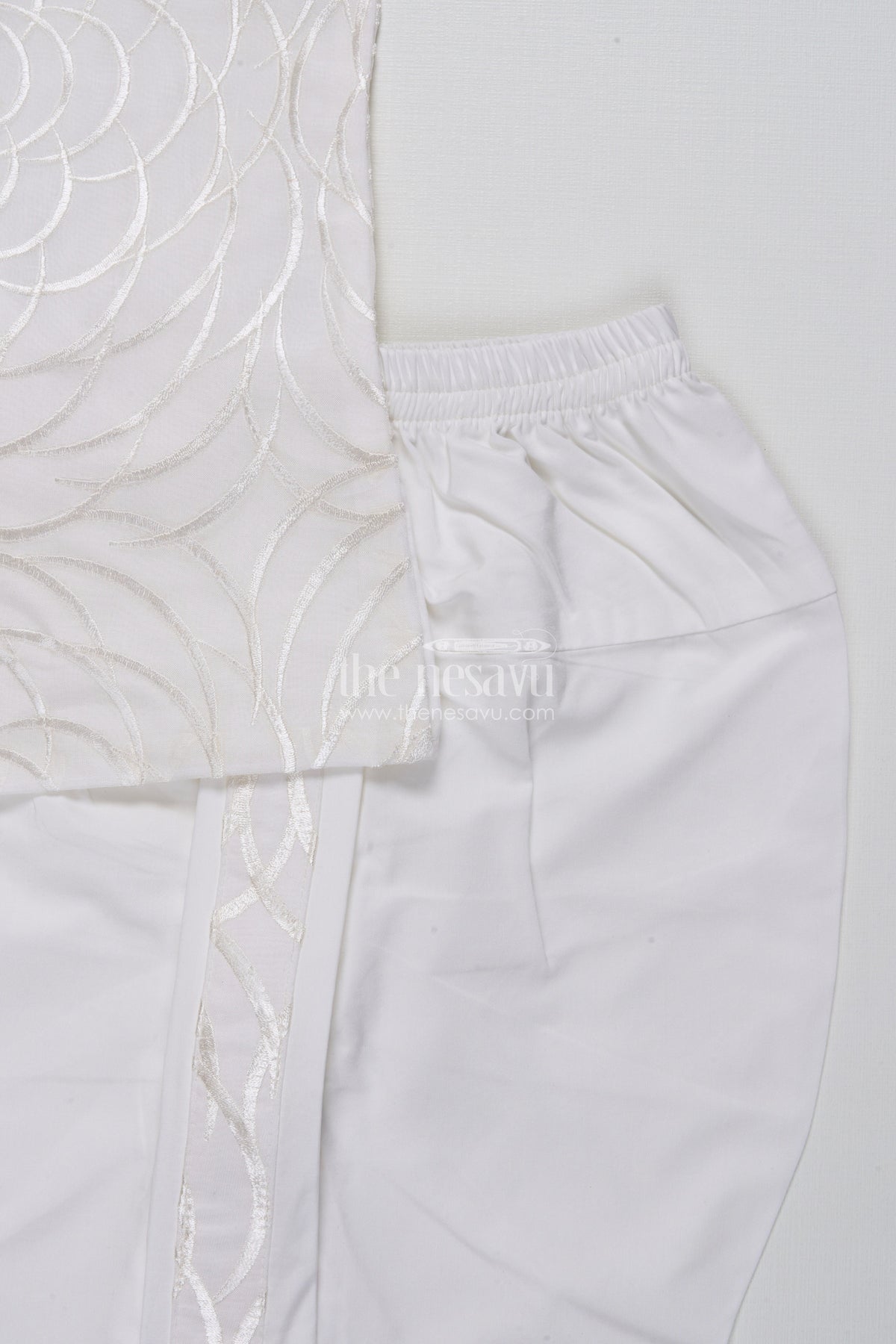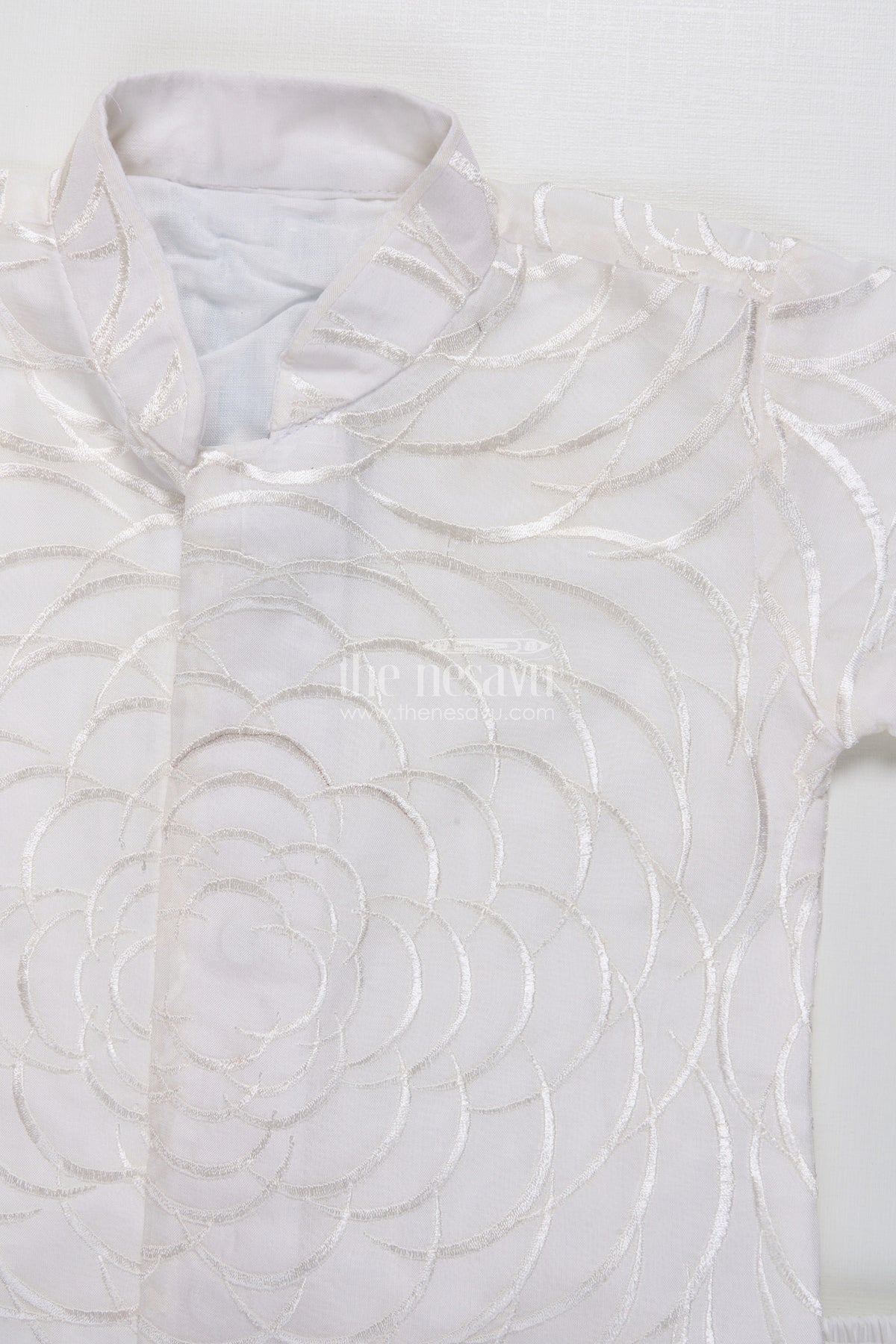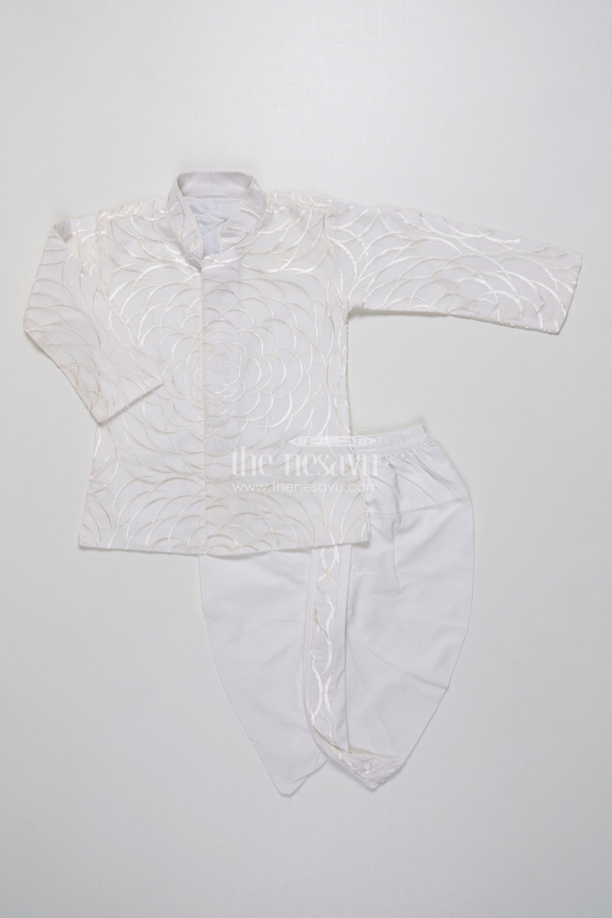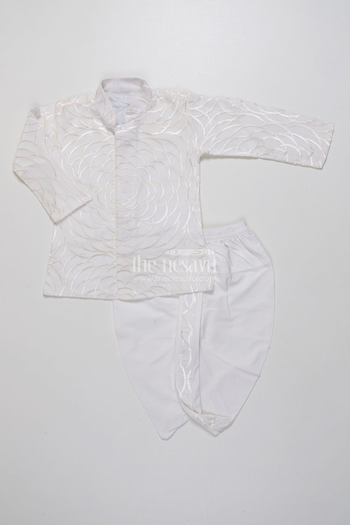 The Nesavu Boys Dothi Set Boys Dothi Set with Mirror and Sequence Embroidery Ethnic Festive Wear Nesavu 16 (1Y) / White BES766B-16 Nesavu Boys Dothi Set Mirror Sequence Embroidery Festive Outfit