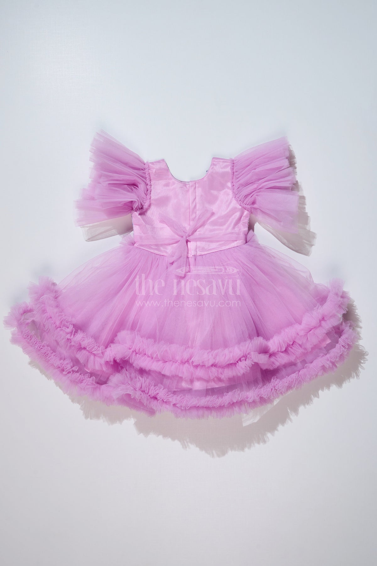 The Nesavu Girls Fancy Party Frock Elegant Purple Short Party Frock for Girls with Sequin Bodice and Ruffled Layers Nesavu 16 (1Y) / Purple PF198A-16 Nesavu Purple Short Party Frock Girls Floral Sequin Detailing Ruffled Net Skirt