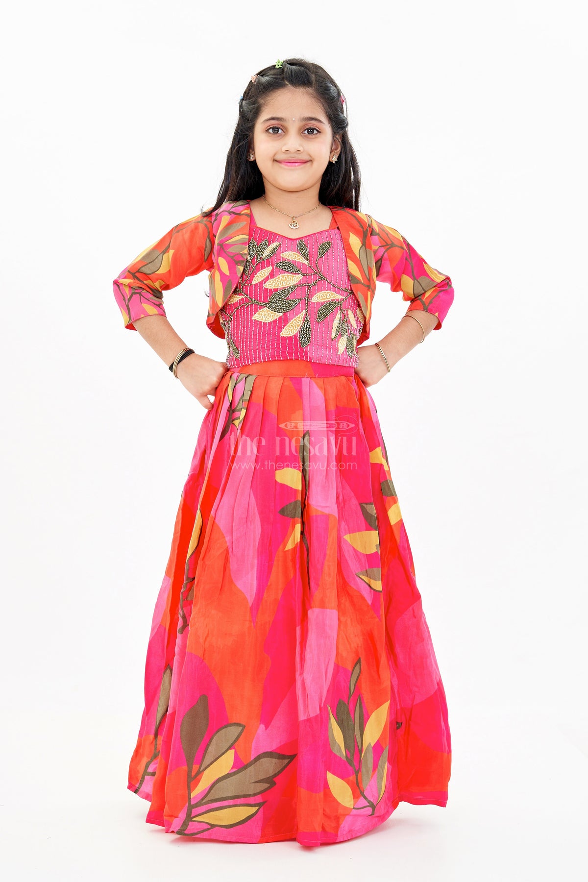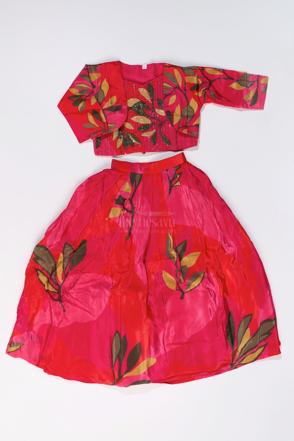 Make your little one feel like a star in this birthday lehenga, designed with vibrant colors and elegant craftsmanship. The set includes a pure muslin silk lehenga skirt with a flowy silhouette and a matching sleeveless choli adorned with intricate bead and sequin work. The floral prints on the lehenga add a lively touch, making it perfect for birthdays and festive celebrations. The outfit also comes with a stylish matching dupatta to complete the look. Soft, breathable fabric ensures comfort throughout the day, while the secure closure provides a snug fit. This dazzling ensemble is a perfect blend of tradition and modern fashion, making it an excellent addition to your child's wardrobe.