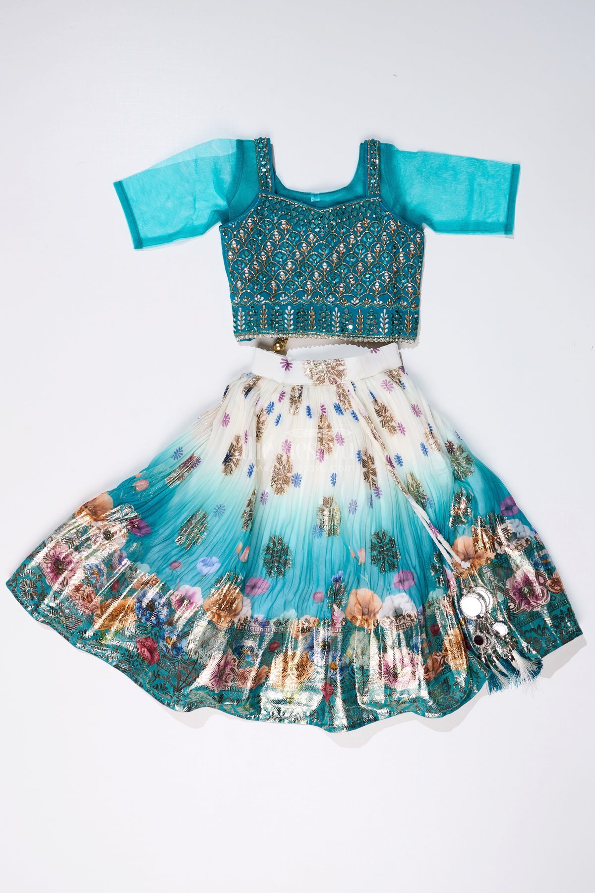 Girls Mirror Work Lehenga Design with Embroidered Blouse and Georgette Skirt for Festive Wear