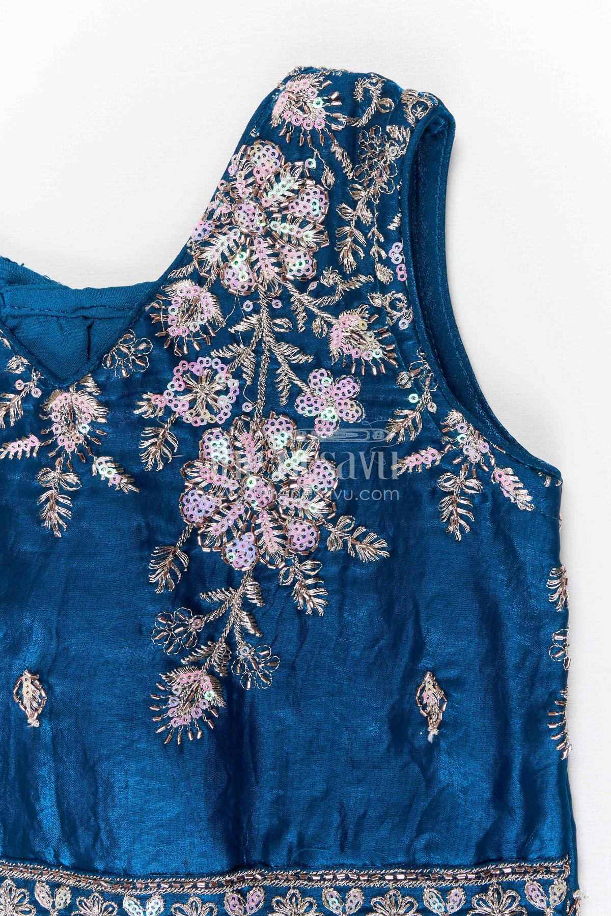 • The blouse features beautiful designer embroidery that adds intricate detailing to the outfit
