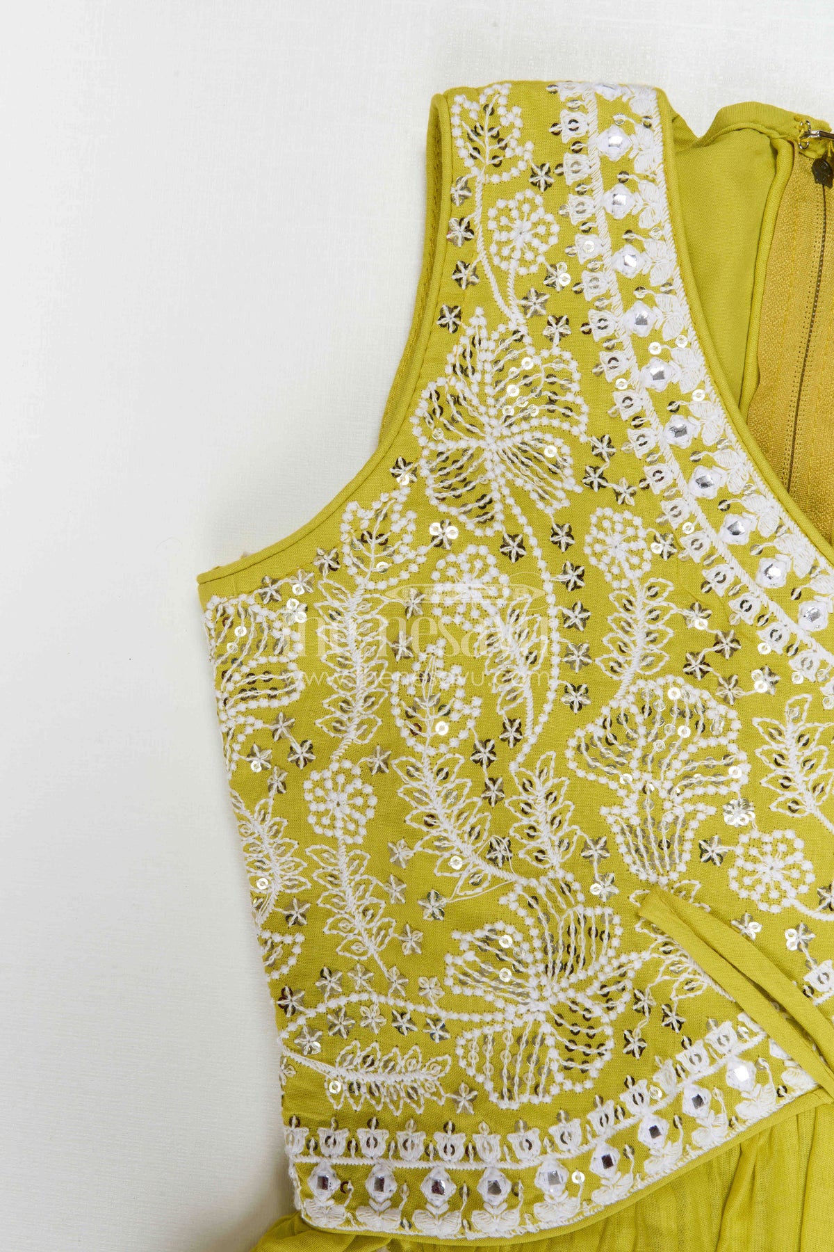 • Features a sleeveless layered top paired with wide flared sharara pants for a stylish look