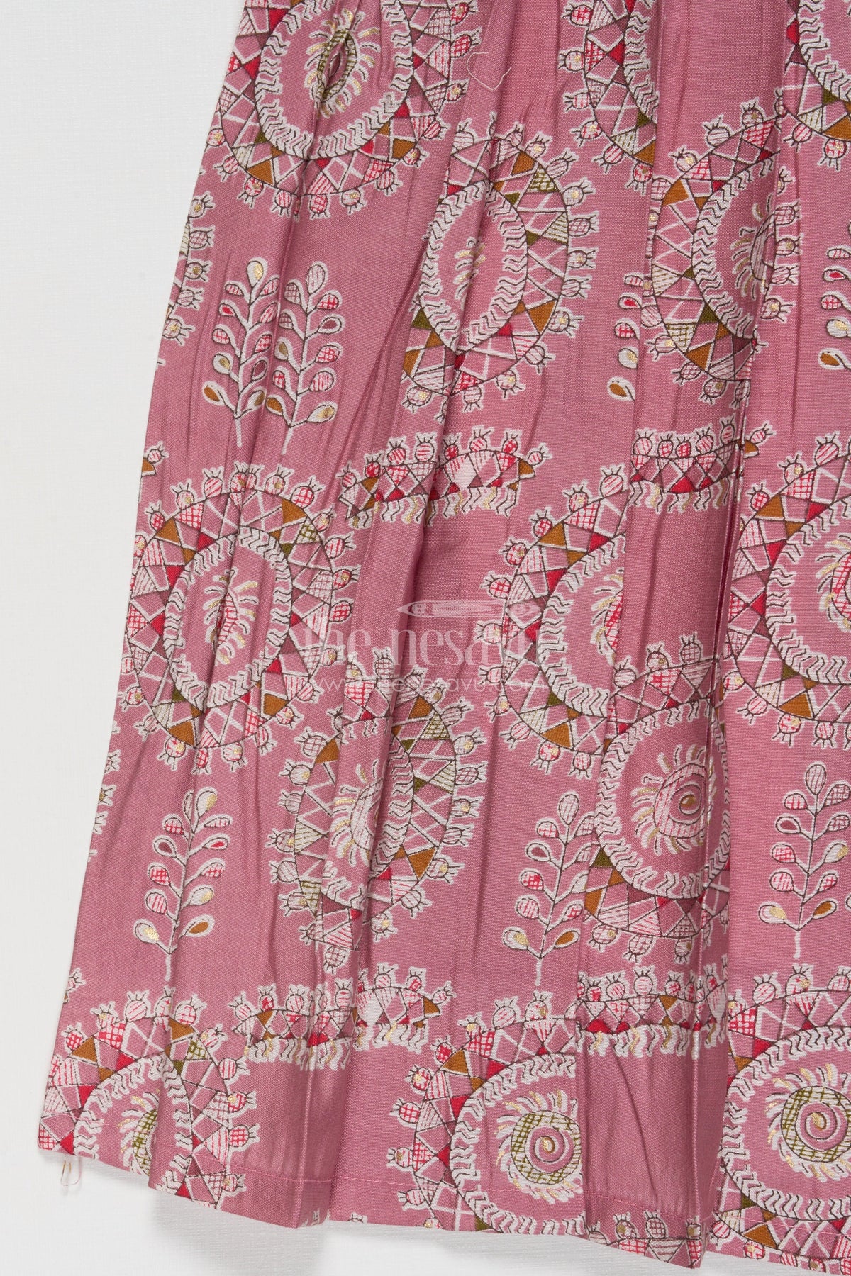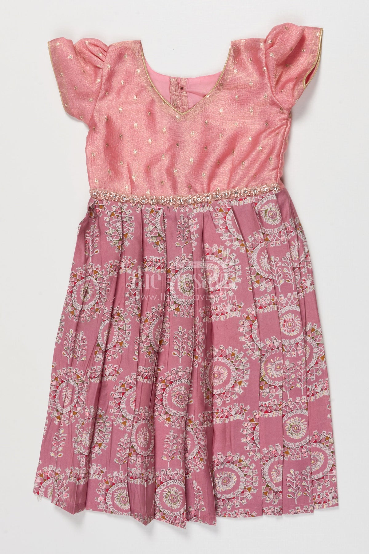 The Nesavu Girls Silk Gown Traditional Silk Gown for Girls for Weddings and Festive Events Nesavu 16 (1Y) / Pink GA387B-16 Nesavu girls traditional silk gown with mandala print and sequin belt for weddings and poojas