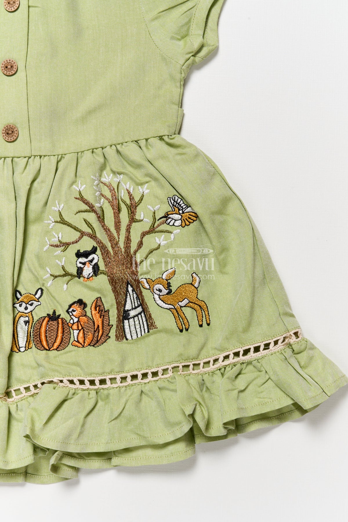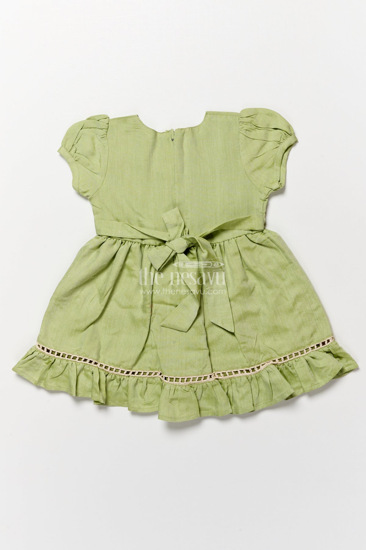 The Nesavu Girls Cotton Frock Baby Girl Cotton Frock for Casual Wear and Playtime Nesavu 16 (1Y) / Green GFC1913A-16 Nesavu baby girl cotton frock embroidered motifs casual outings playtime wear