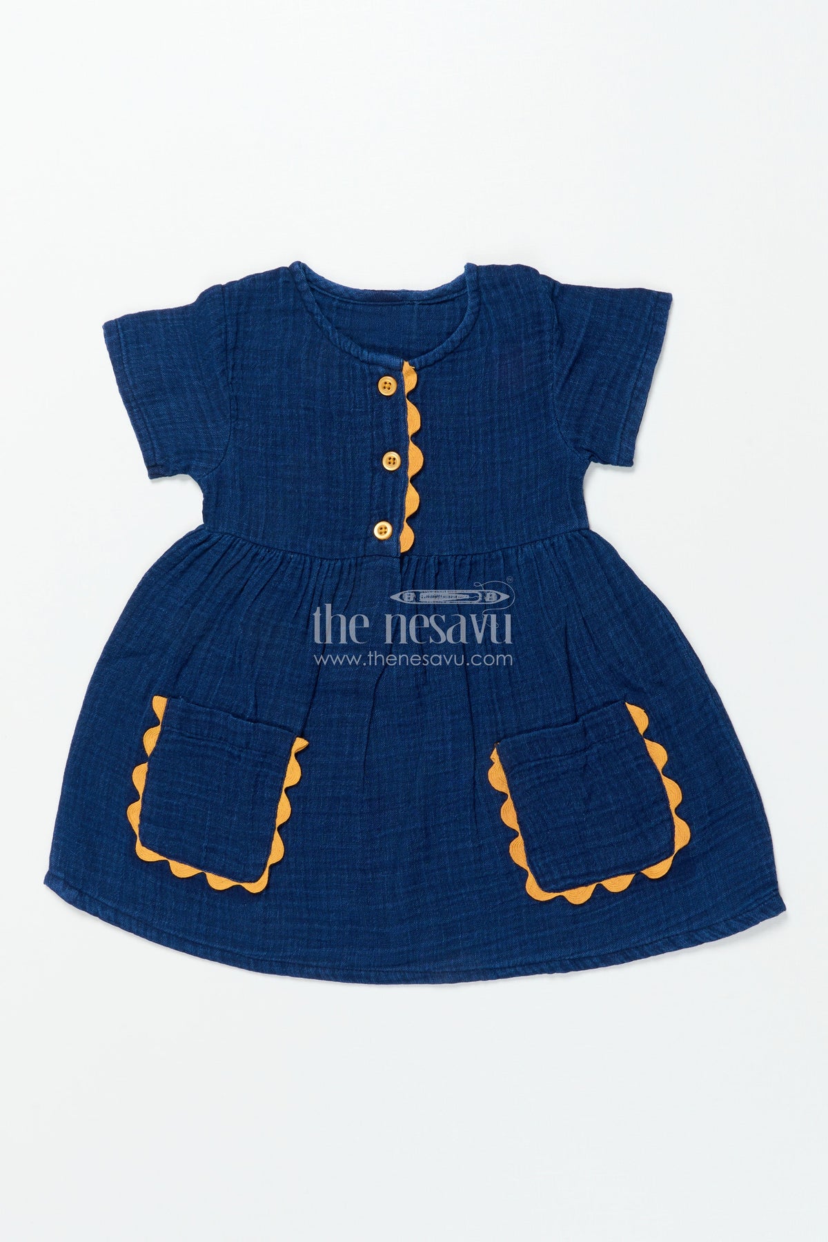 The Nesavu Girls Cotton Frock Baby Girl Cotton Frock with Pockets for Everyday Wear and Daycare Nesavu 12 (3M) / Blue GFC1928A-12 Nesavu baby girl cotton frock scallop-trim pockets playdates daycare comfort