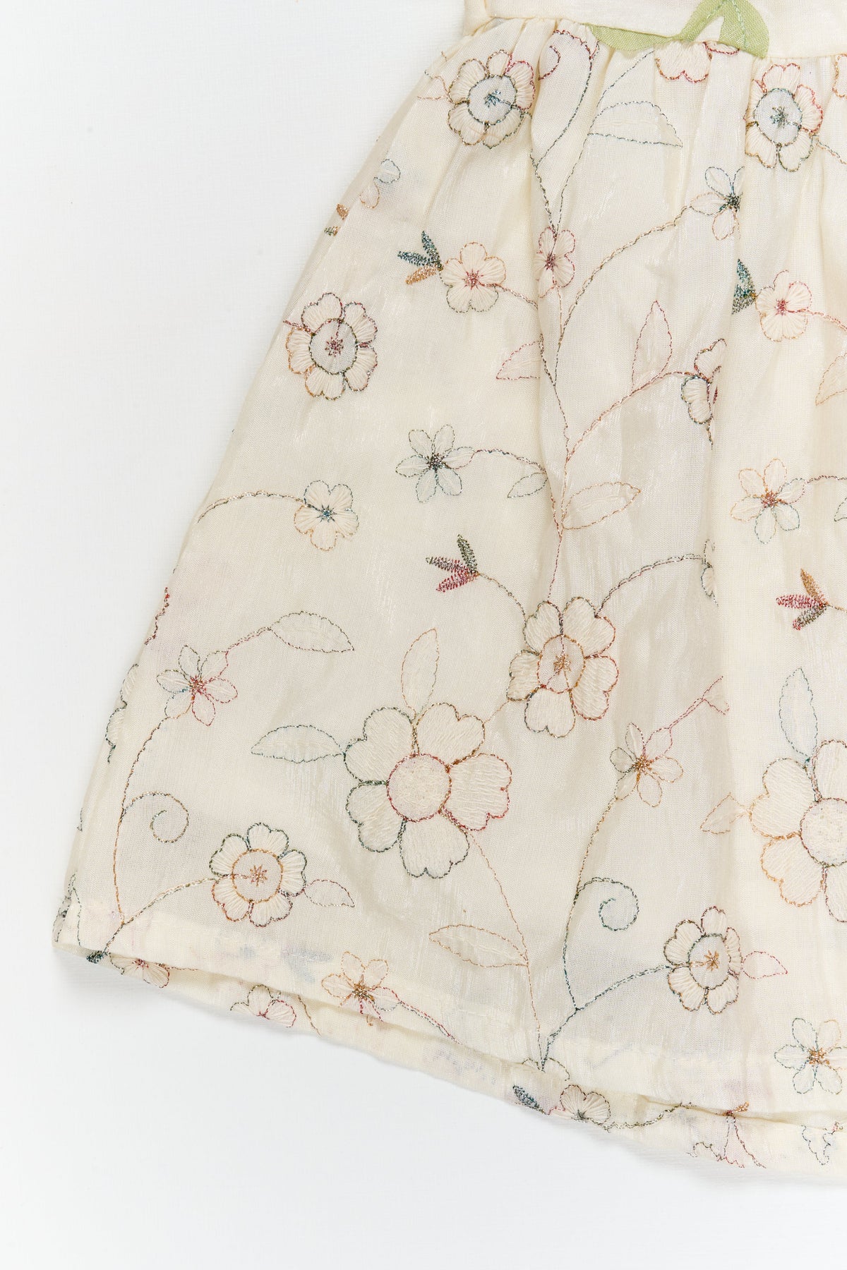 - Floral threadwork across the skirt adds a timeless, handcrafted touch
