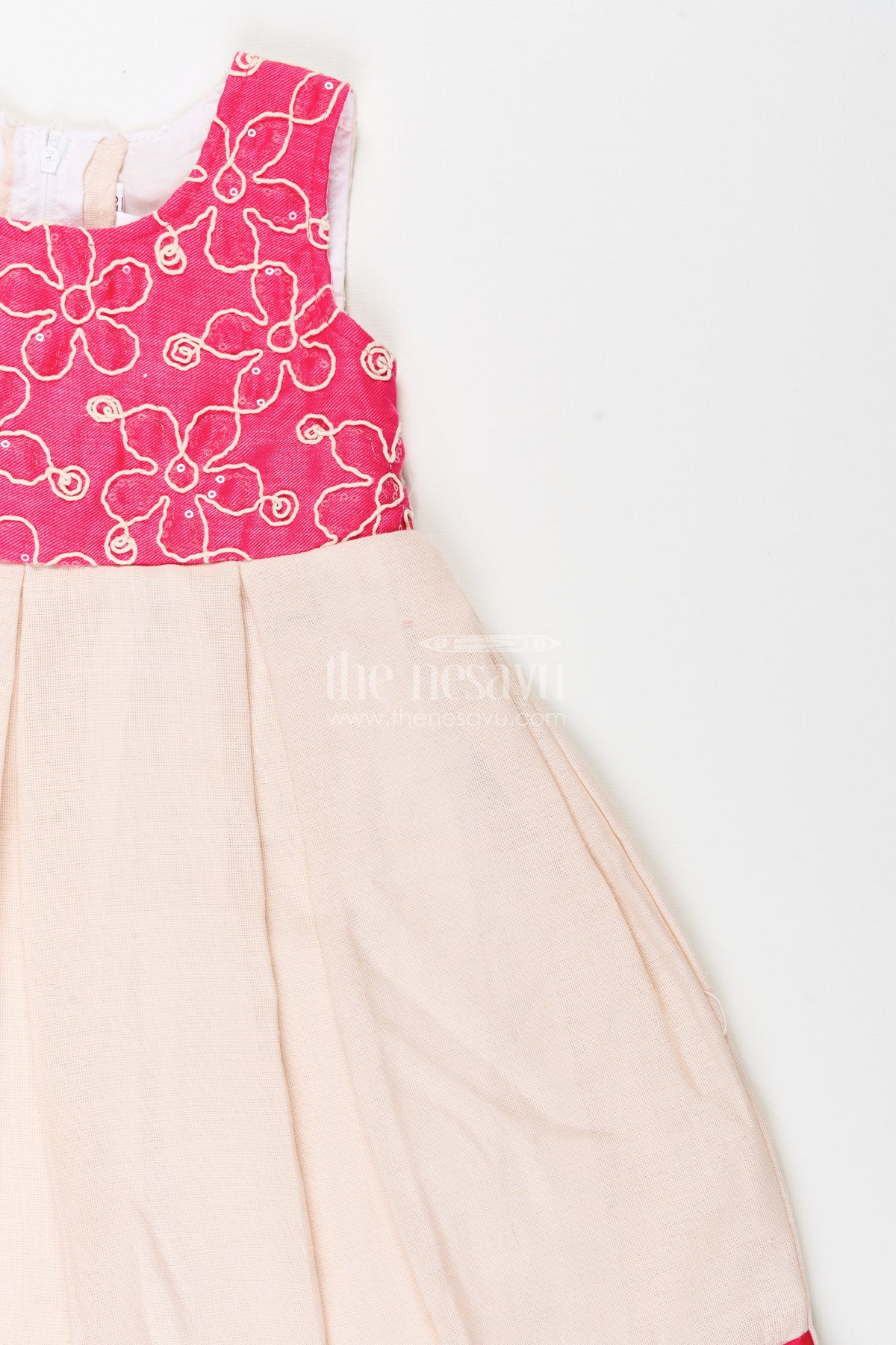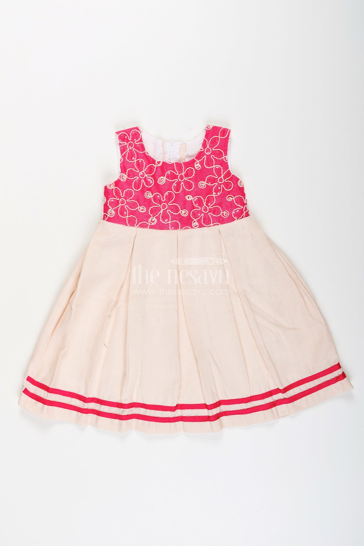 - This baby girl flax cotton frock with pink yoke embroidery is a cheerful pick for birthdays and festive gatherings