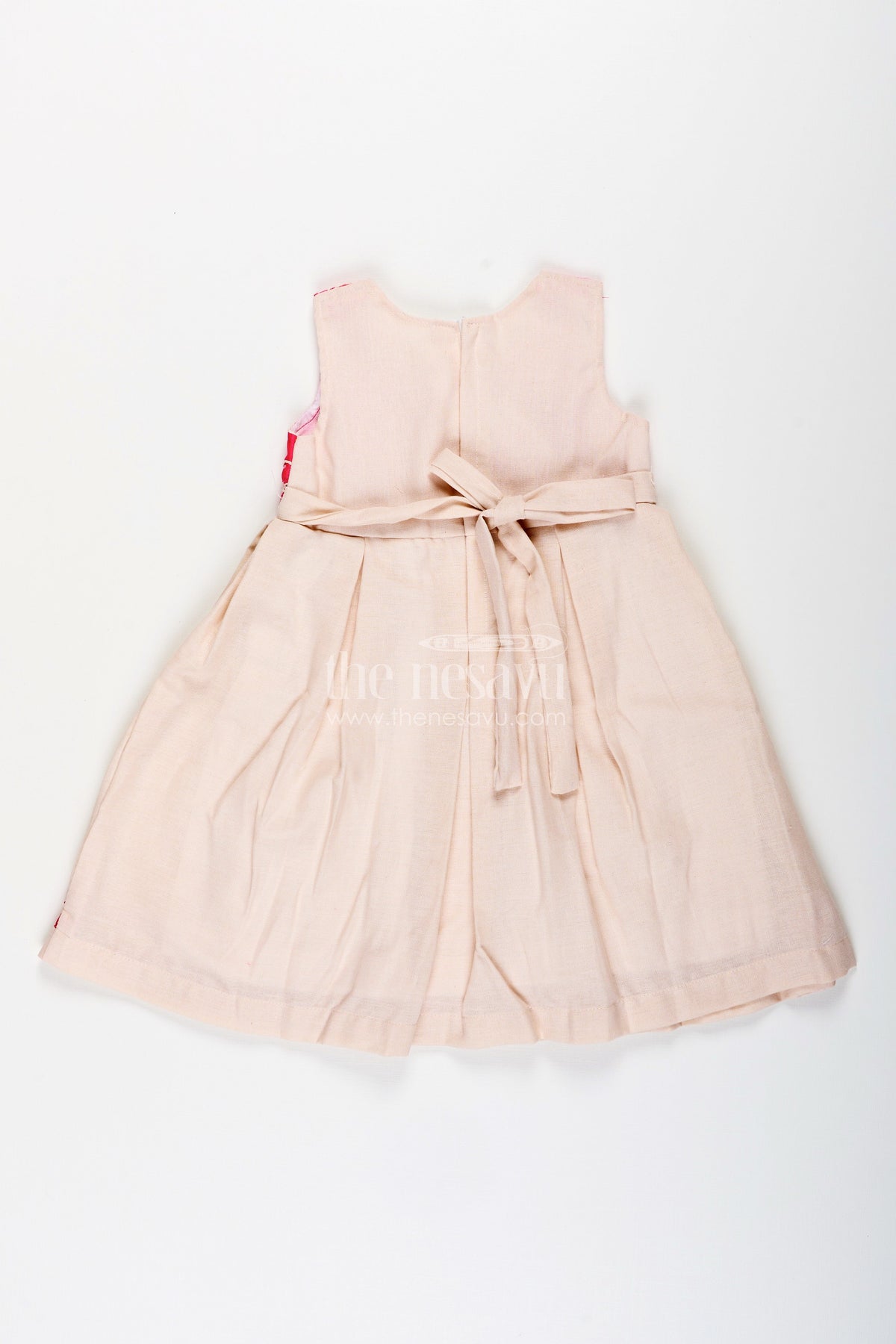 Baby Girl Flax Cotton Frock with Pink Yoke Embroidery for Parties