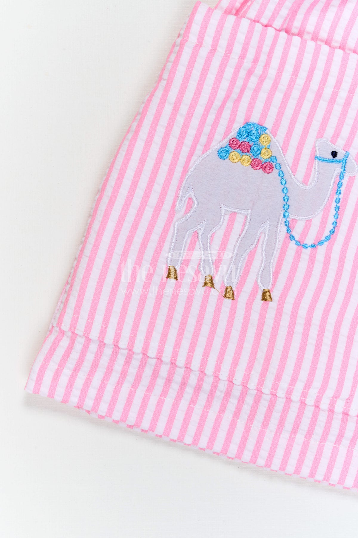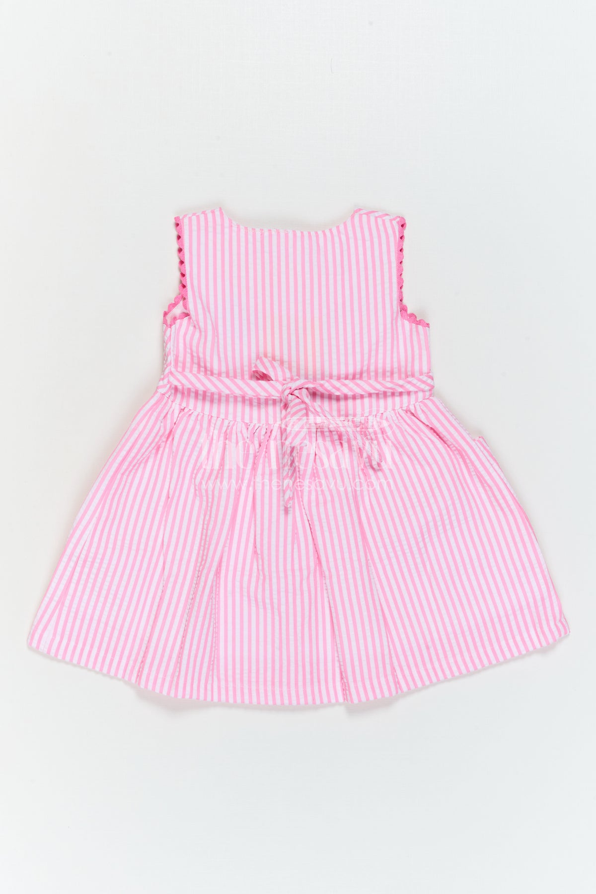 - This baby girl frock for summer outings is crafted from soft seersucker cotton for a light and airy feel
