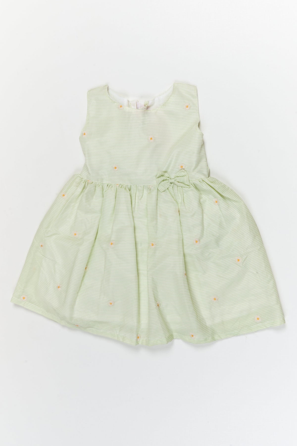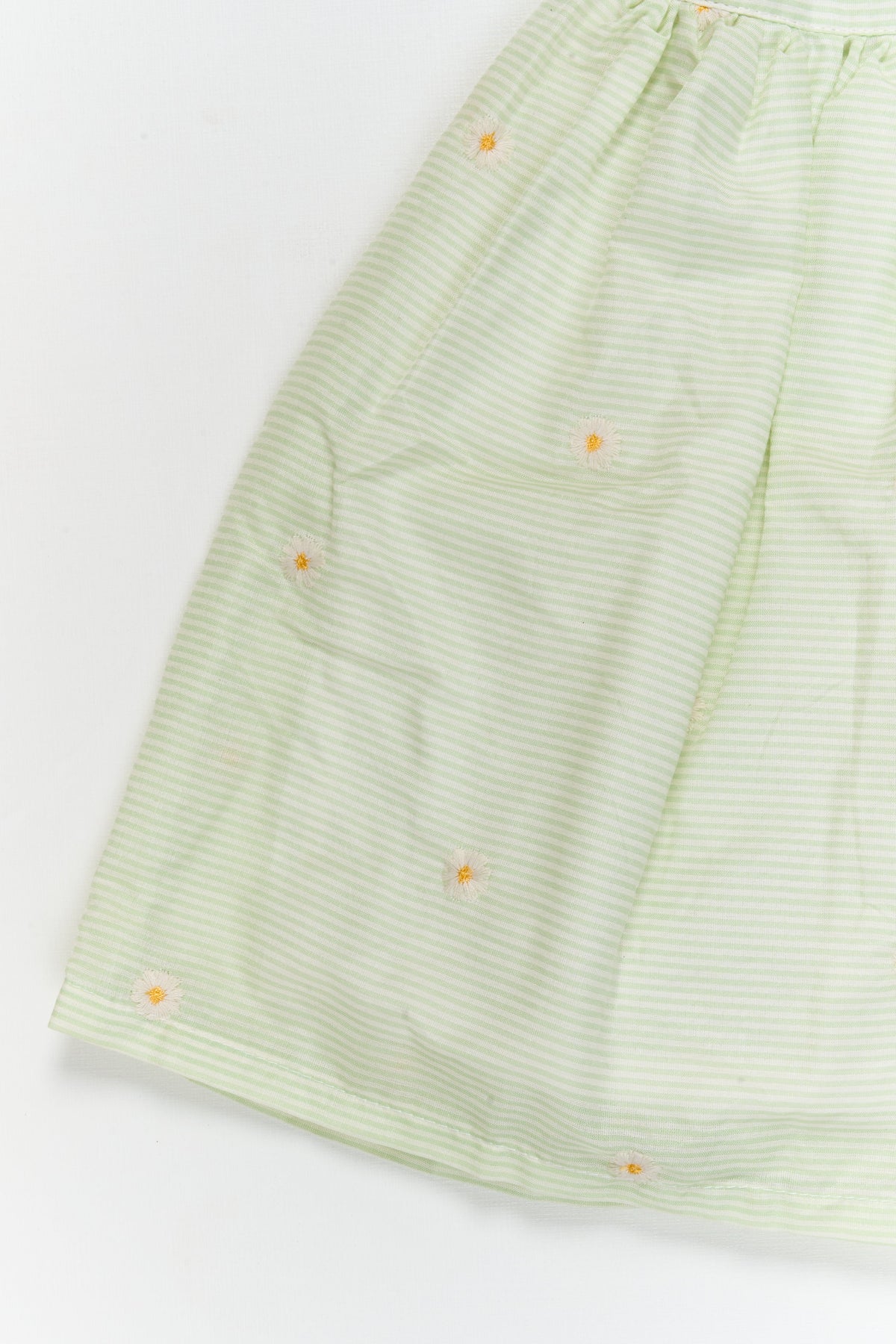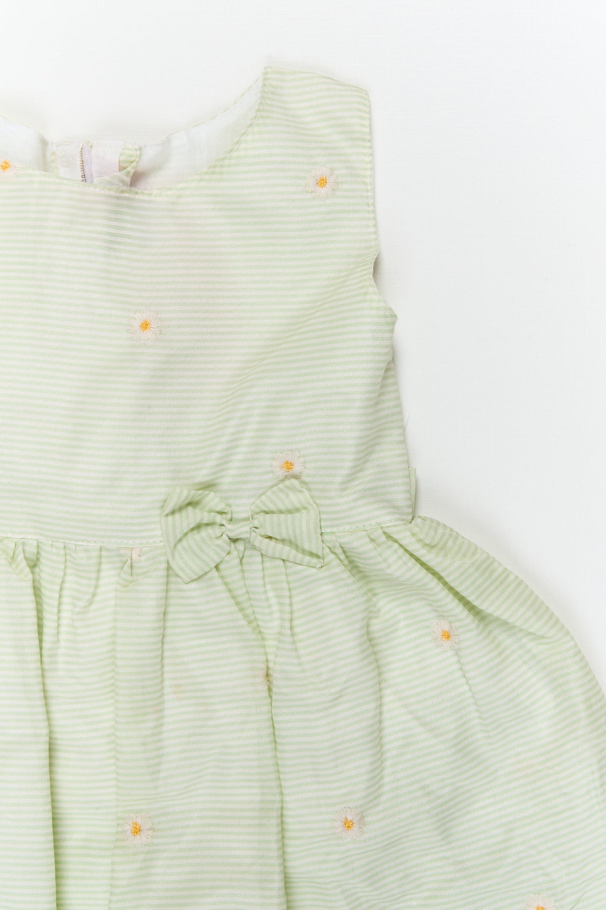 - Soft striped cotton base with embroidered floral details makes this frock irresistibly cute