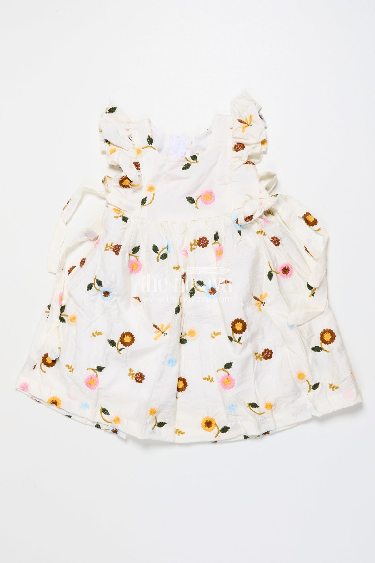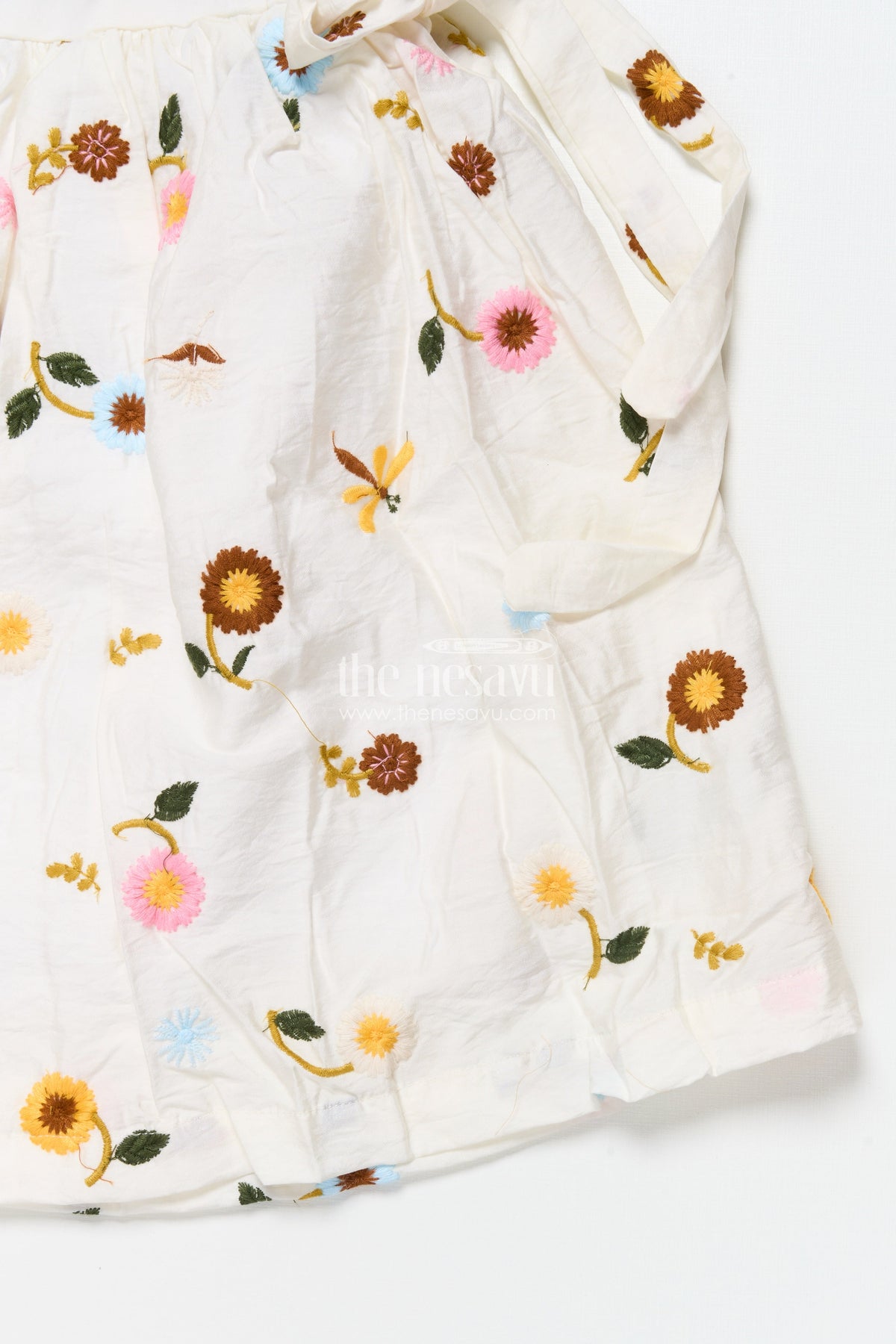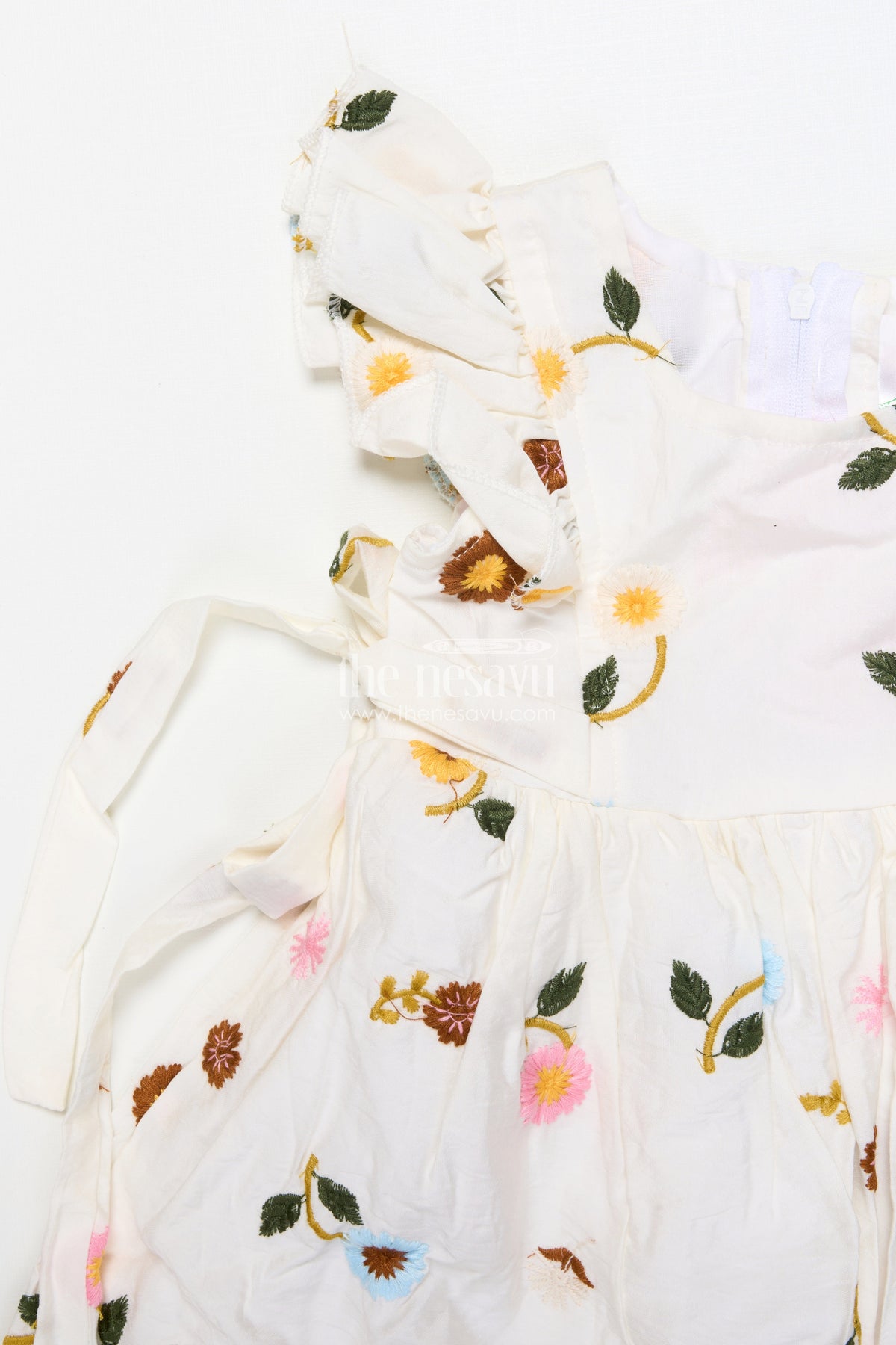 The Nesavu Girls Cotton Frock Everyday Cotton Frock for Baby Girls with Floral Threadwork Nesavu 20 (3Y) / Half white GFC1994B-20 Nesavu baby girl cotton frock floral embroidery perfect everyday wear play