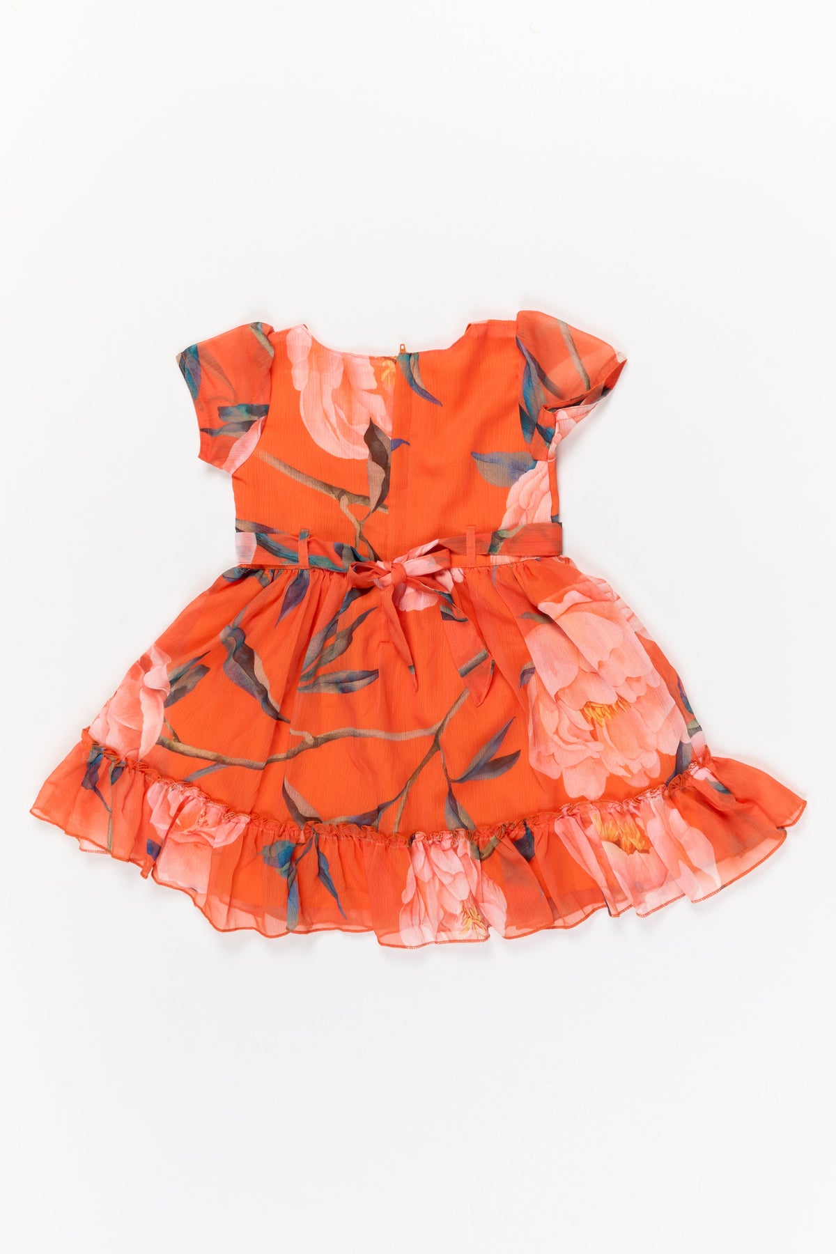 - This girls fancy frock is made from flowy georgette with a vibrant floral digital print