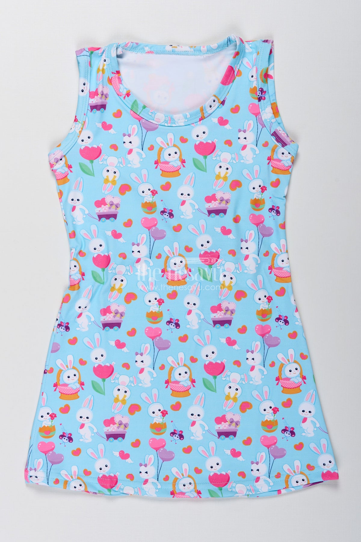 The Nesavu Girls Cotton Frock Girls Bunny Print Cotton Frock for Playdates and Casual Outings Nesavu 22 (4Y) / Blue GFC1893A-22 Nesavu Girls Bunny Print Cotton Frock Sleeveless Playdate Dress Fun Cartoon Pattern