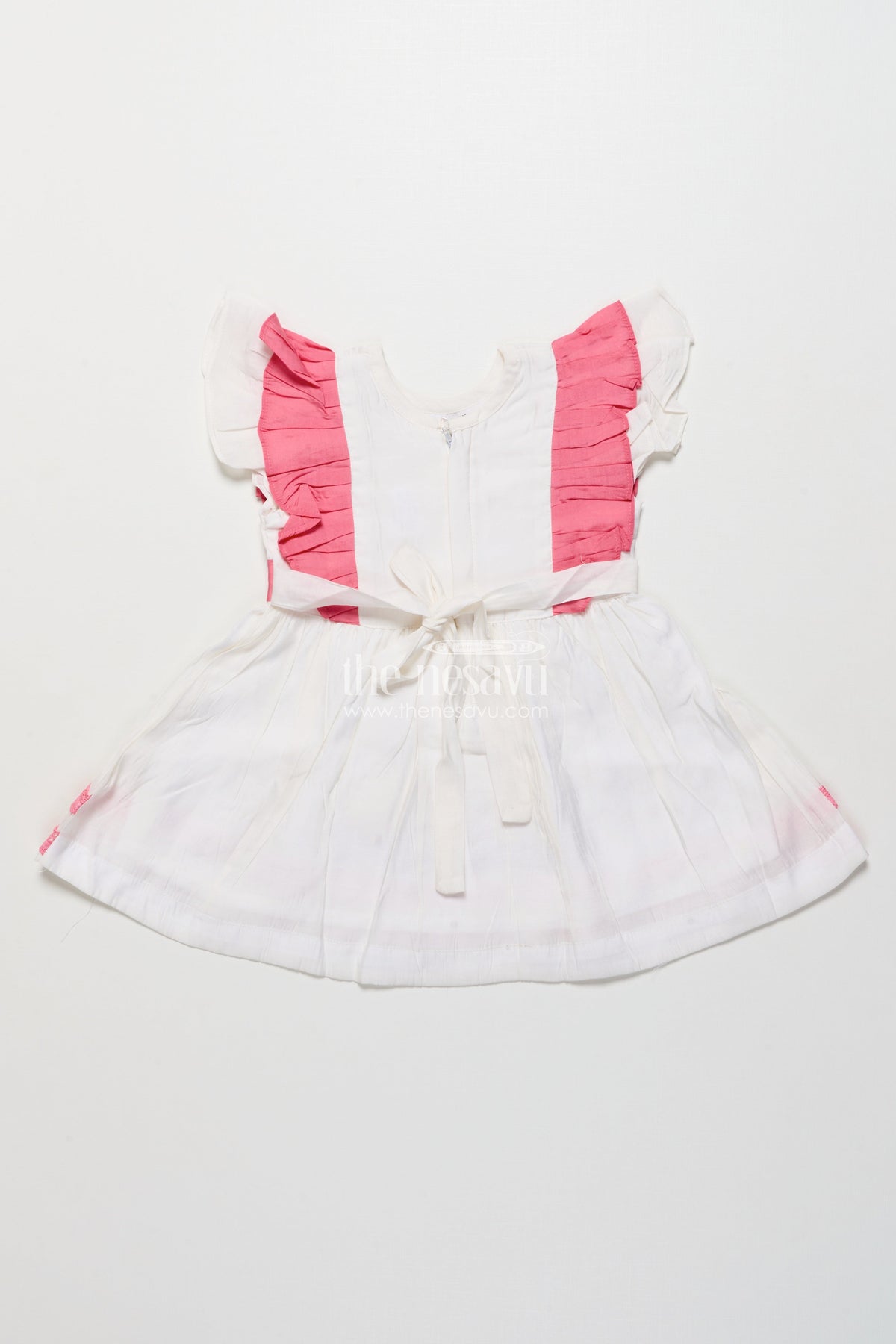 The Nesavu Girls Chanderi Frock Girls Chanderi Cotton Frock with Lamb Embroidery for Birthday Events Nesavu 16 (1Y) / Half white GFC1985A-16 Nesavu girls Chanderi cotton frock lamb embroidery  perfect birthdays parties