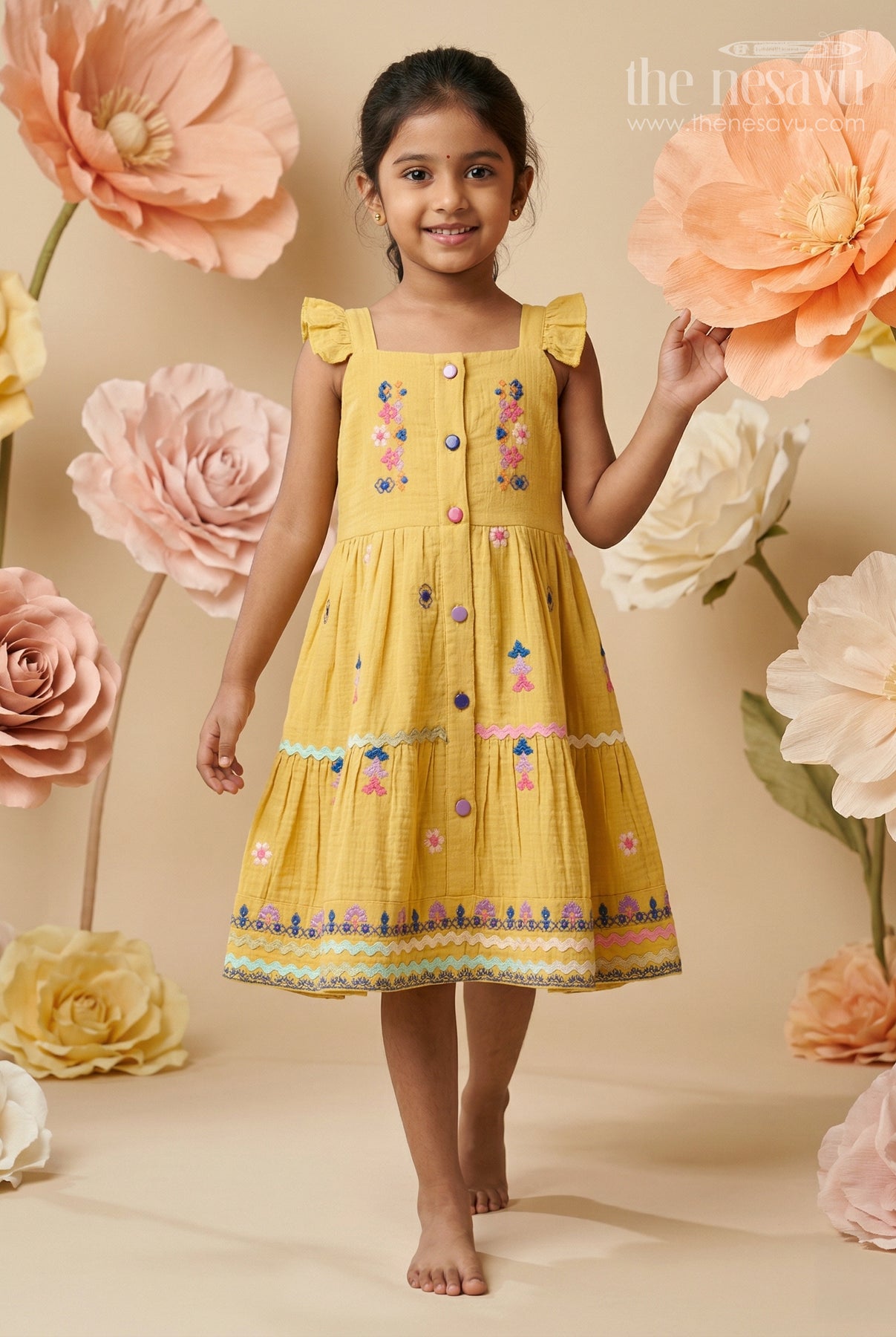 - Crafted from soft muslin cotton with thread embroidery that feels gentle and breathable