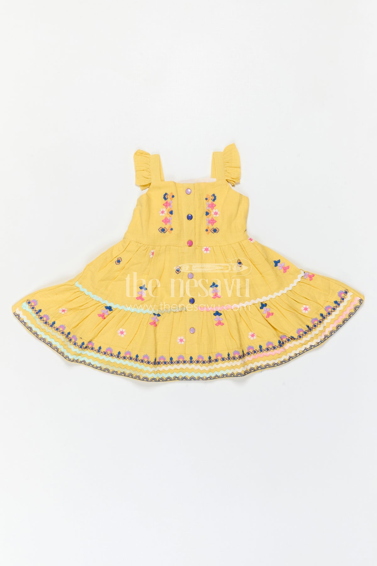 - Design: Embroidered layered flared frock