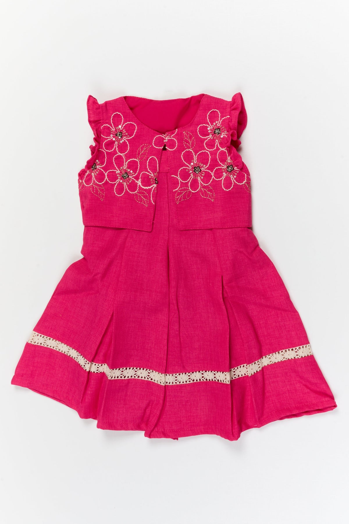 Girls Embroidered Cotton Frock with Shrug for Special Occasions