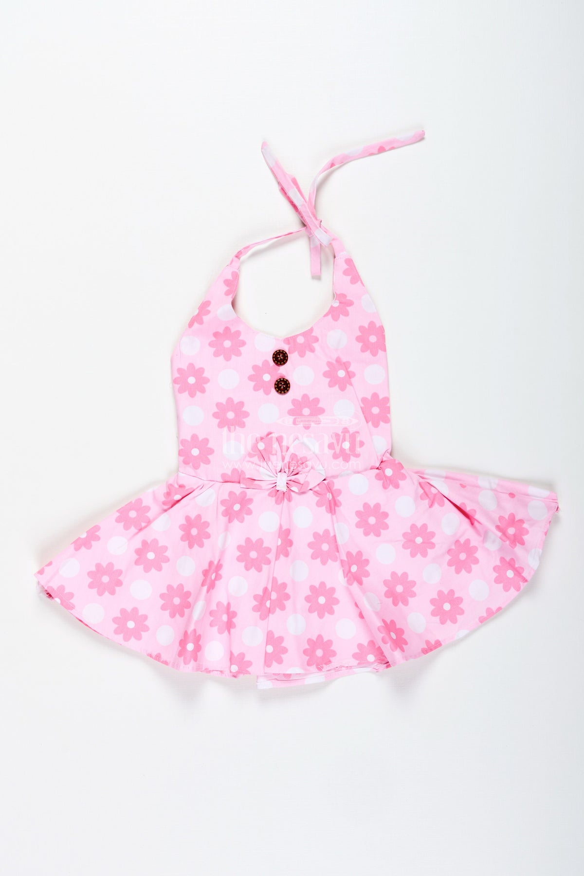 Girls Pink Cotton Frock with Polka Dot Floral Print for Playful Summer Days