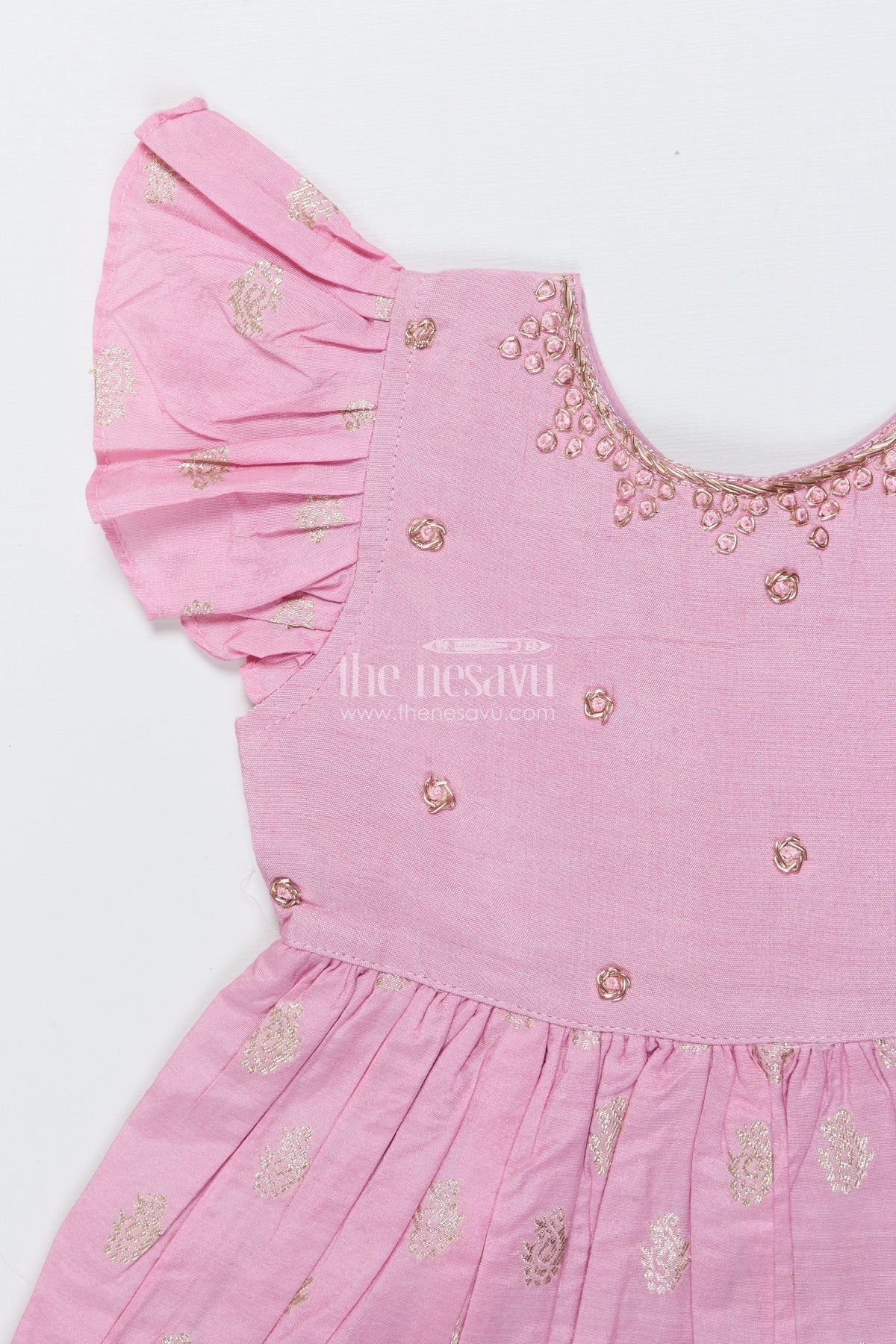 - Features delicate gold-toned motifs all over with subtle thread detailing near the neckline