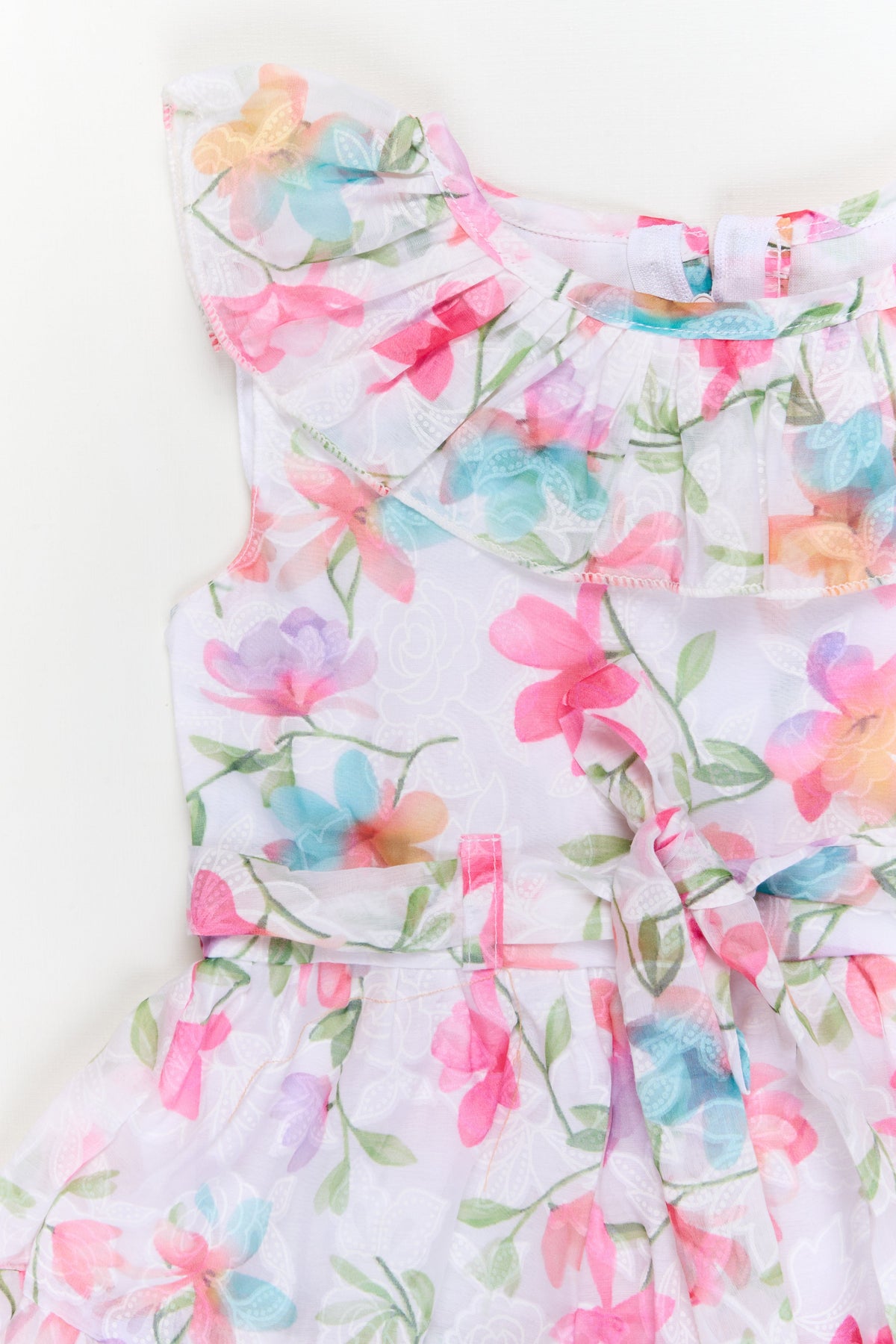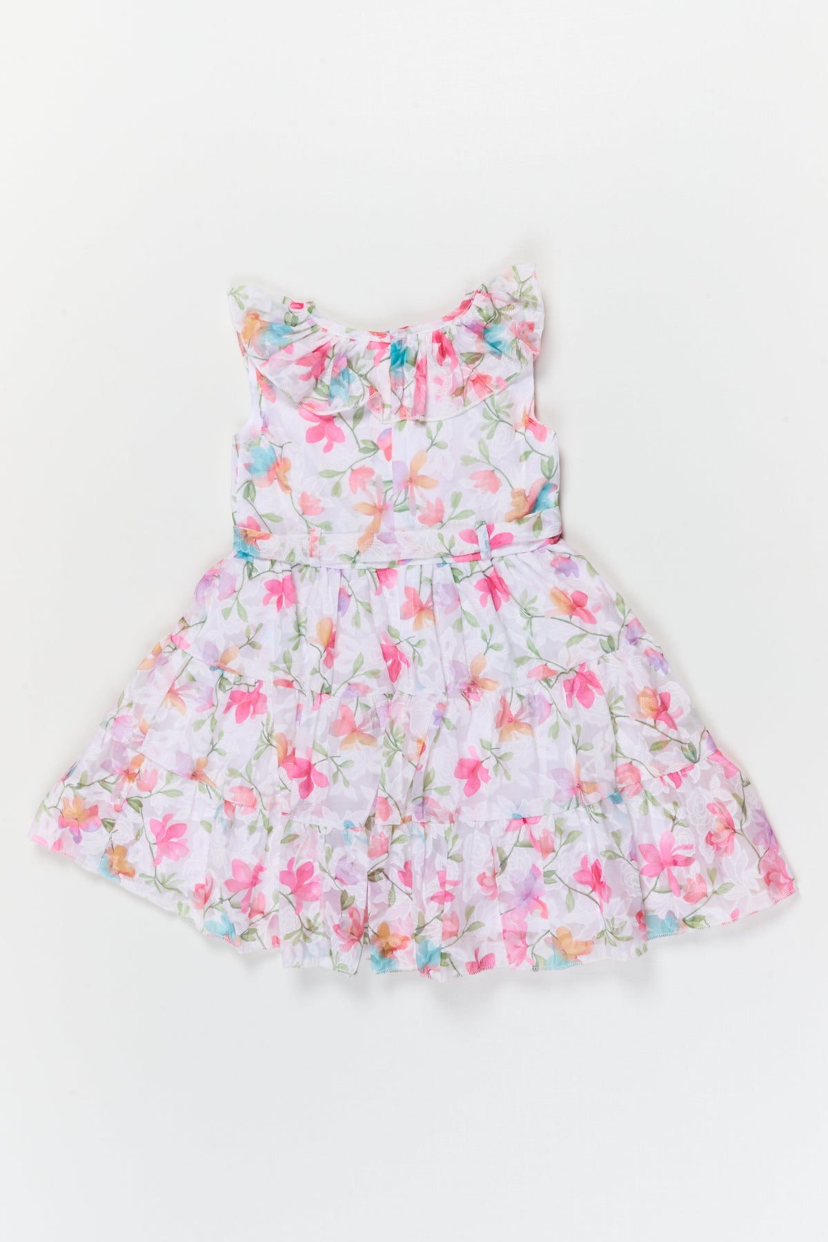 Girls Sleeveless Frock with Digital Floral Print for Outings and Birthdays