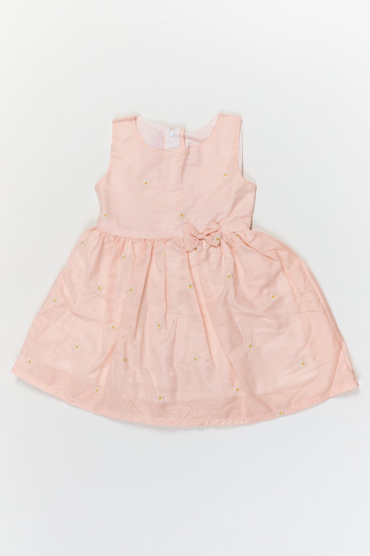 Striped Cotton Frock with Daisy Embroidery for Sunny Days and Casual Outings