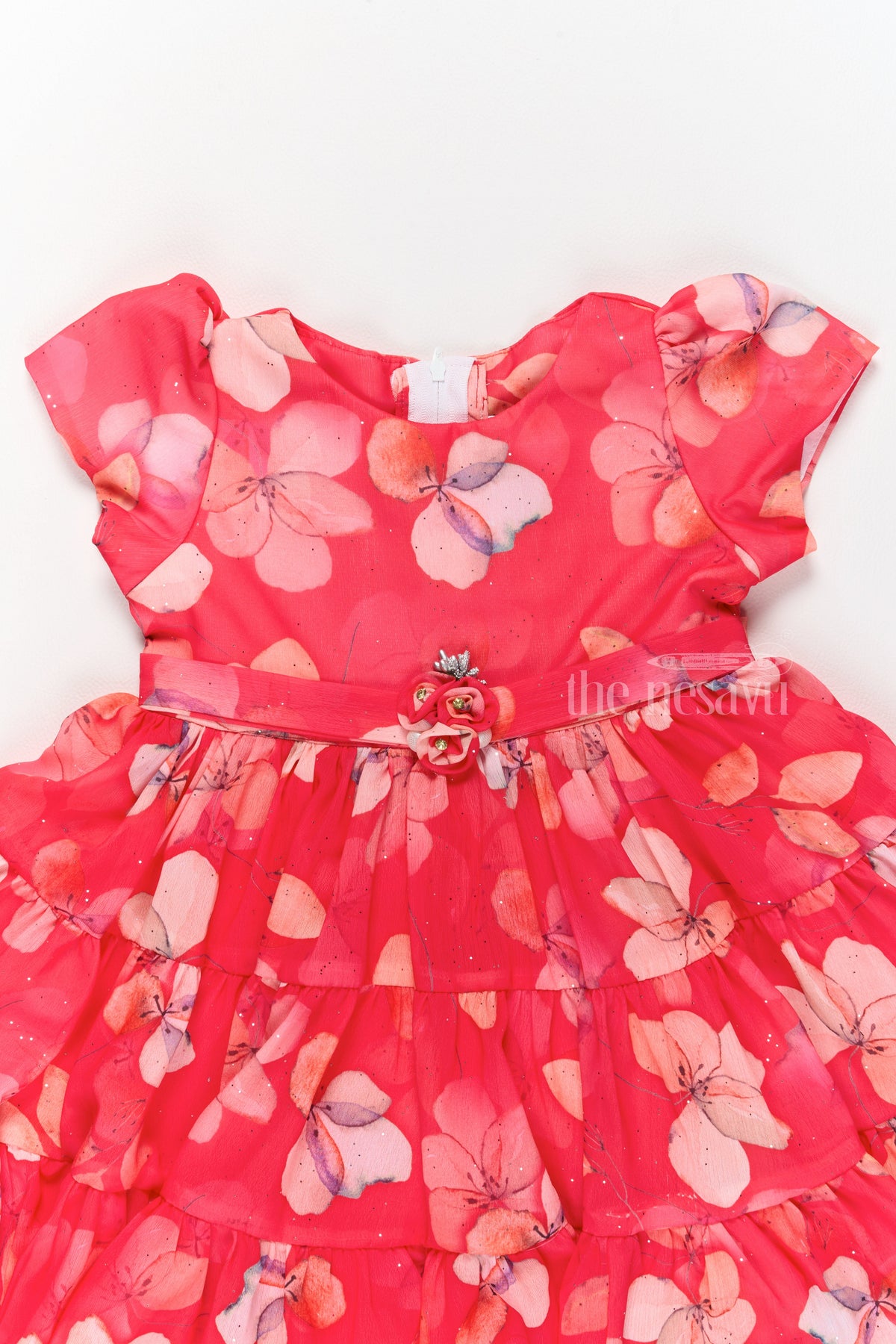 Bring festive cheer to life with this vibrant red fancy Christmas outfit for girls. Crafted from premium Georgette, this dress features delightful butterfly floral motifs that radiate joy and celebration. The shimmering accents and a charming floral waist belt add a festive sparkle, while the flared skirt design makes it perfect for twirling during Christmas parties or holiday gatherings. Designed for sizes 18 to 28, the lightweight fabric ensures breathability and comfort, making it a must-have outfit for the holiday season.