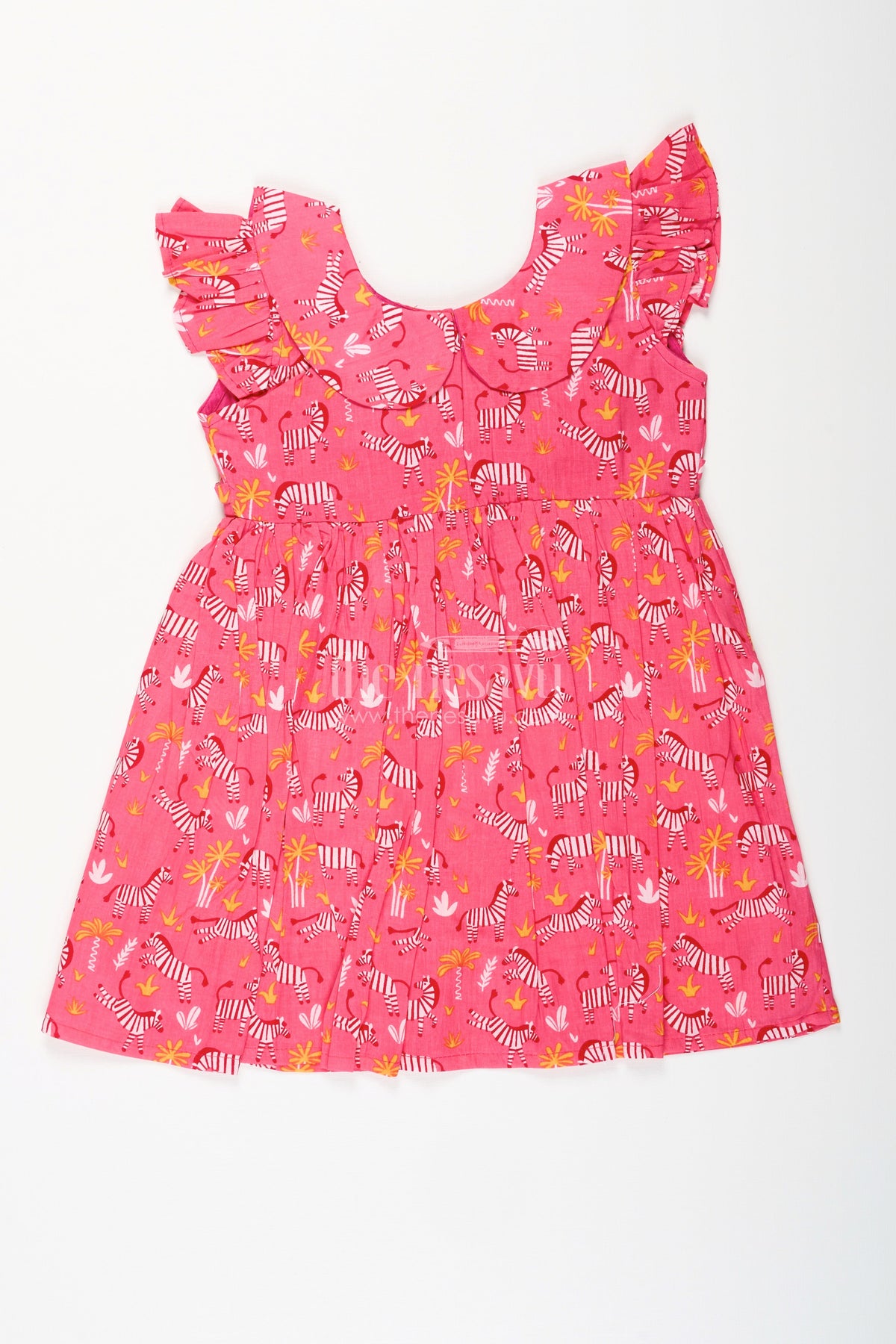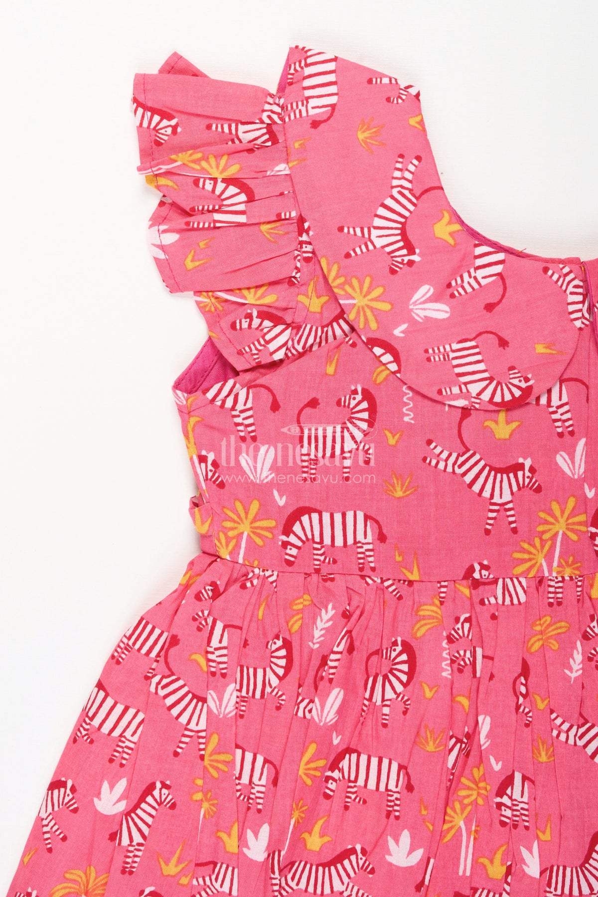 - This pink zebra print cotton frock is a playful pick for your toddler girl's everyday adventures