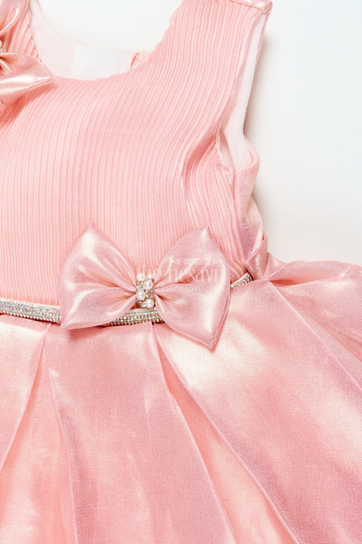 • This baby girl fancy frock is crafted in shimmery glaze organza for a luxurious party vibe