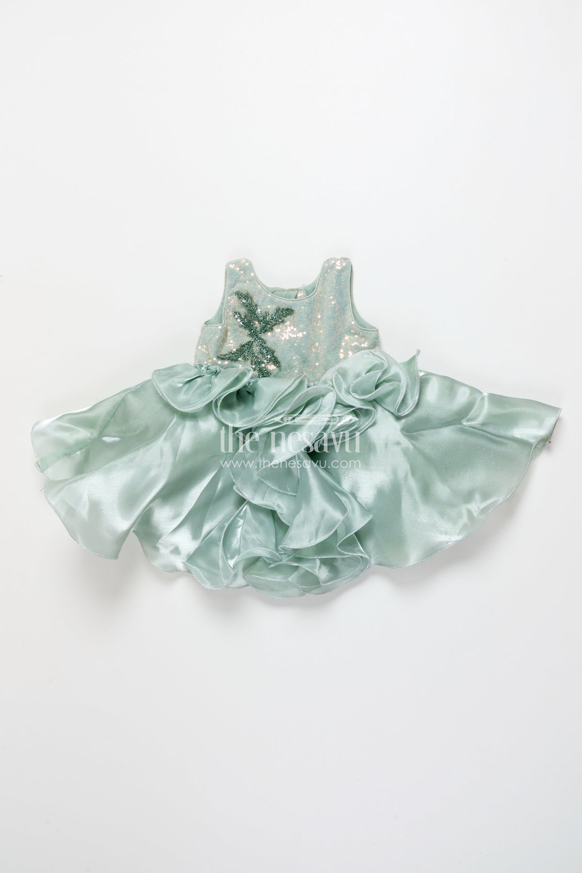 The Nesavu Girls Fancy Party Frock Girls Sleeveless Organza Frock with Layered Ruffle Skirt Nesavu 16 (1Y) / Green PF251A-16 Nesavu girls ruffle organza frock birthdays events