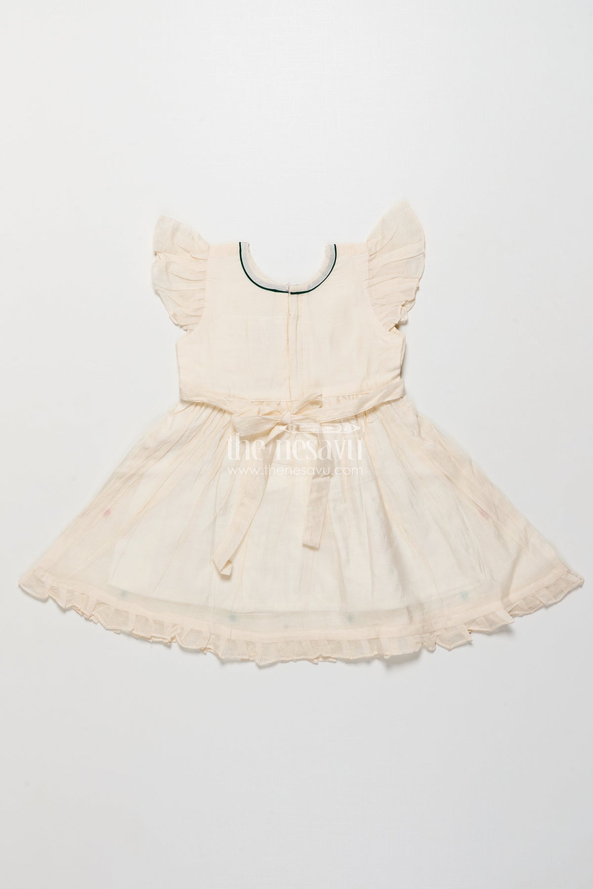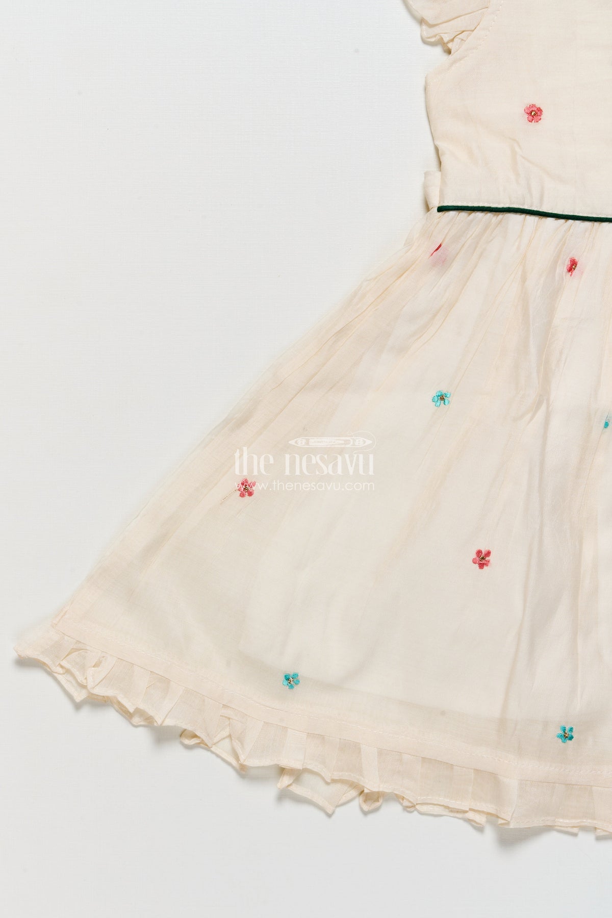 - This Chanderi cotton frock with parrot embroidery is ideal for temple visits, birthdays, and traditional events