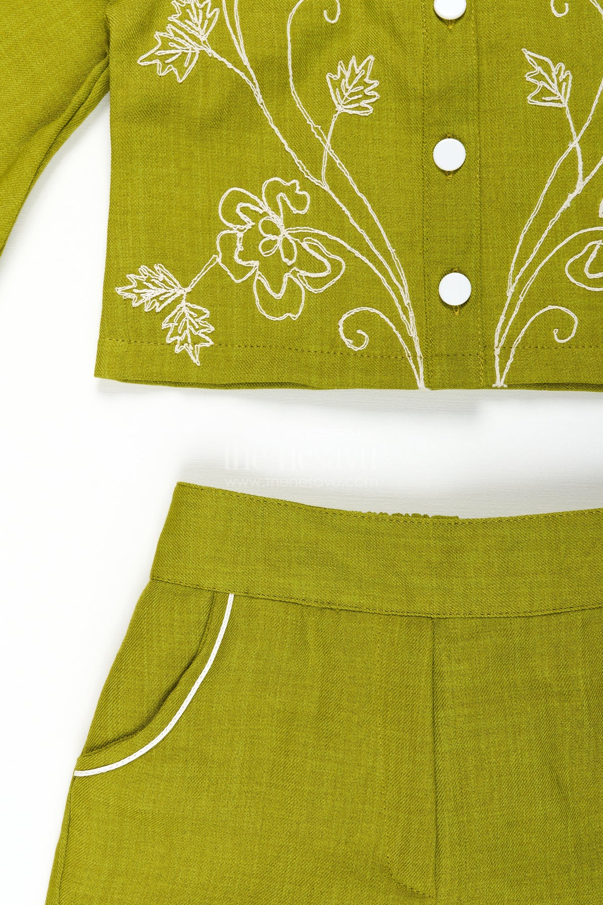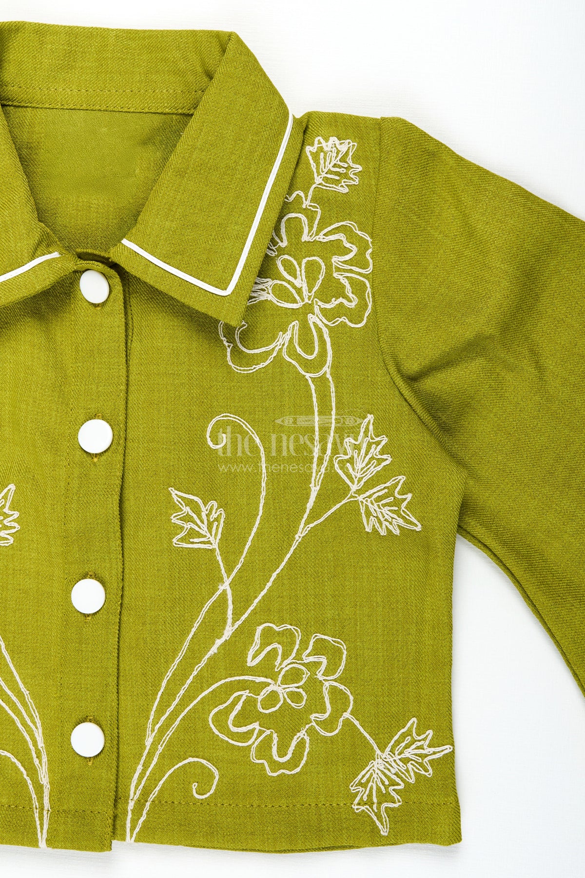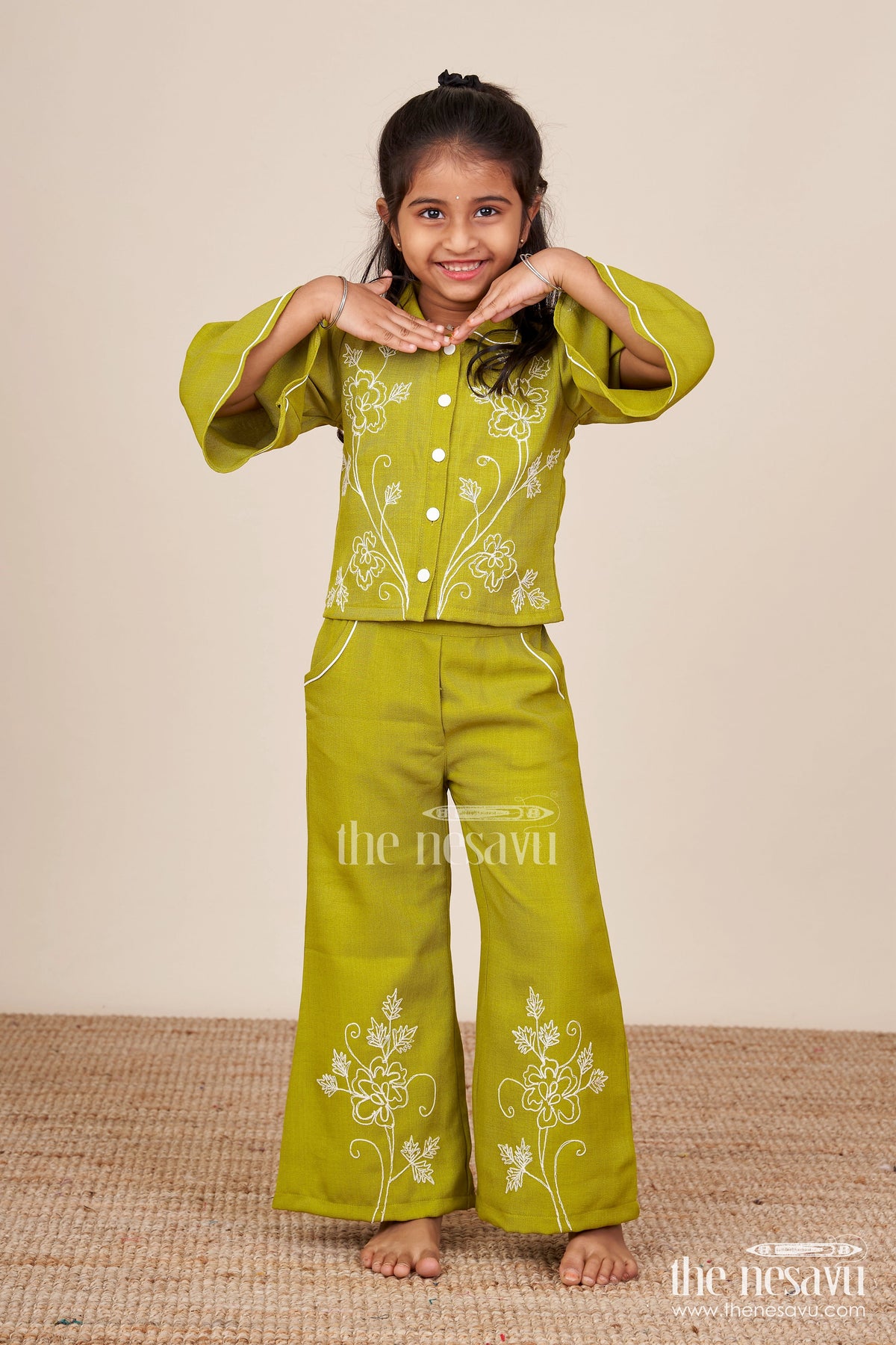 The Nesavu Girls Co-Ord Sets Girls Cotton Embroidery Plazo Set for Ethnic Day and Festivals Nesavu 18 (2Y) / Green GPS726B-18 Nesavu girls cotton embroidered plazo set ethnic day festive dressing